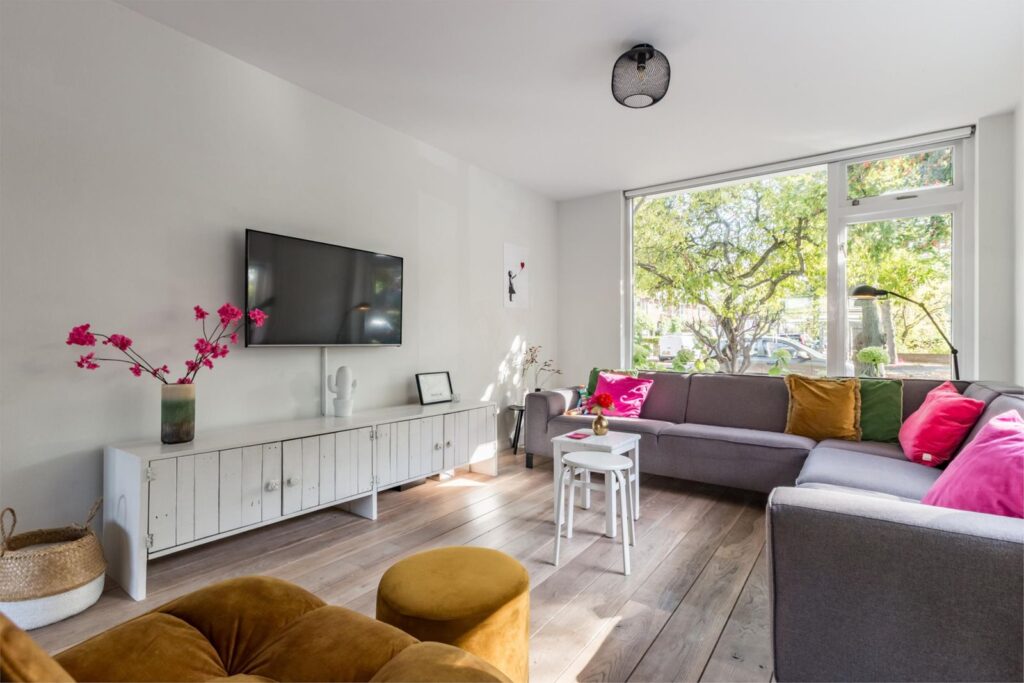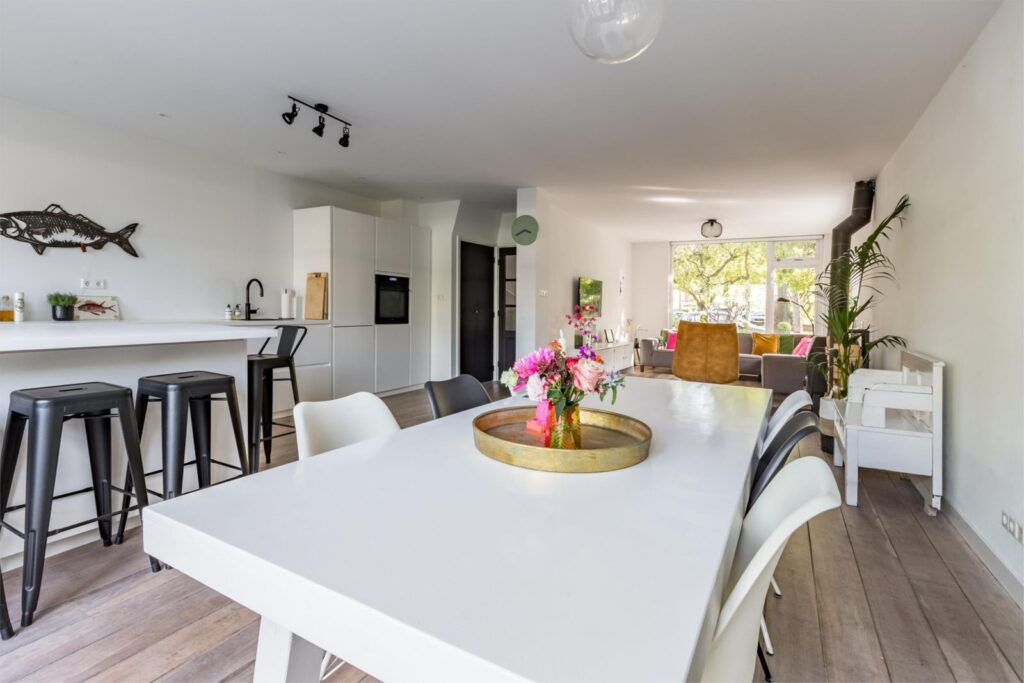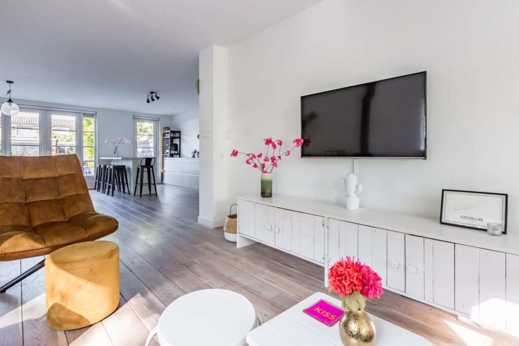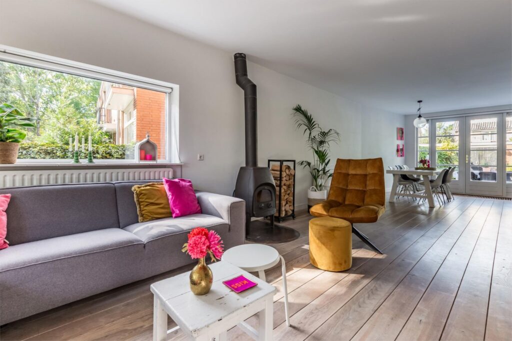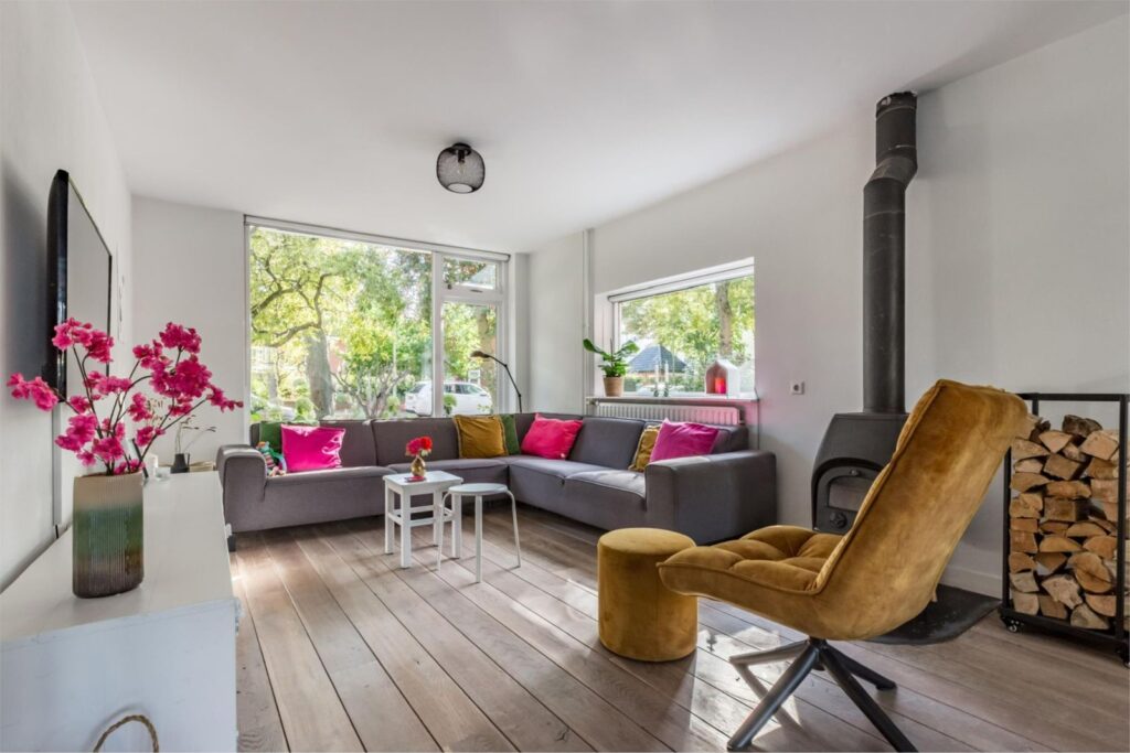 Bij binnenkomst voel je het direct: dit is een huis waar je wilt blijven. De uitgebouwde woonkamer is licht en ruim en staat via openslaande deuren in directe verbinding met de tuin. De houtkachel zorgt voor extra sfeer op koudere dagen.