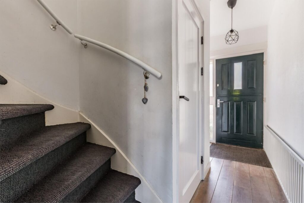 De gehele begane grond is afgewerkt met een robuuste eikenhouten vloer. In de hal vind je een separaat gemoderniseerd toilet en een praktische bergkast.