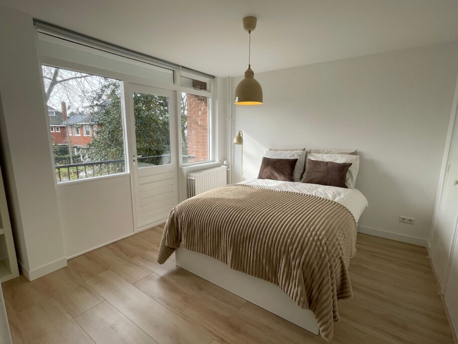 Hier bevinden zich drie comfortabele slaapkamers, recent vernieuwd met strak stucwerk, nieuwe elektra, frisse afwerking en nieuwe vloeren. De ruime slaapkamer aan de voorzijde beschikt over twee inpandige kasten en een balkon.
