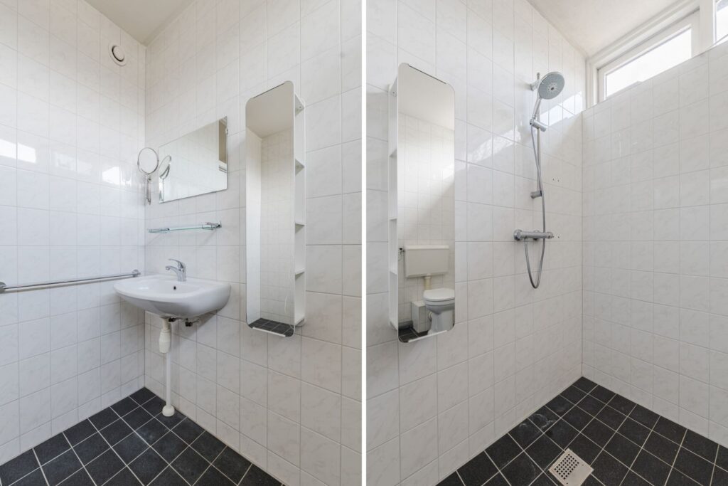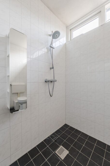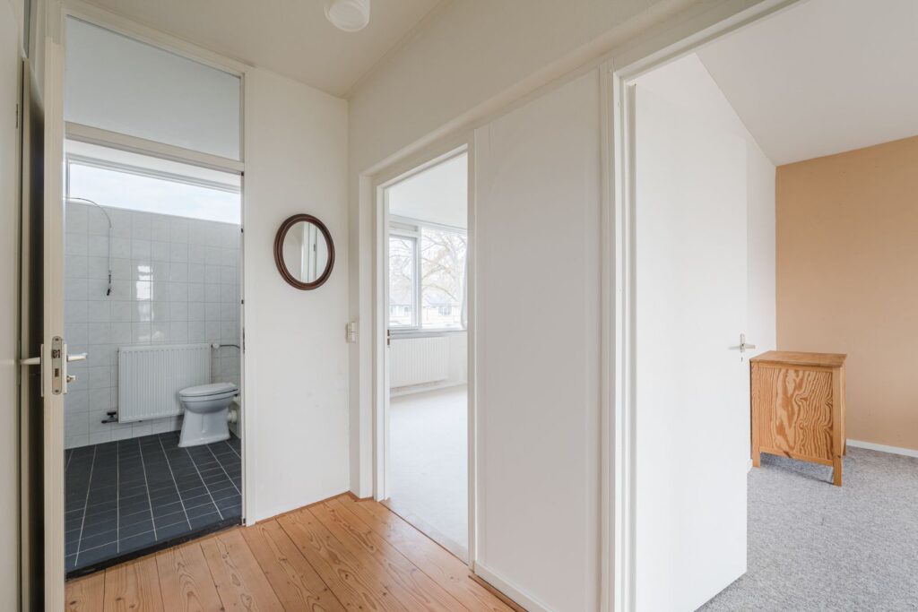 Overloop, bergkast, 3 royale slaapkamers waarvan 1 voorzien van een wastafel, ruime badkamer v.v. toilet, douche, wastafel en wasmachineaansluiting.