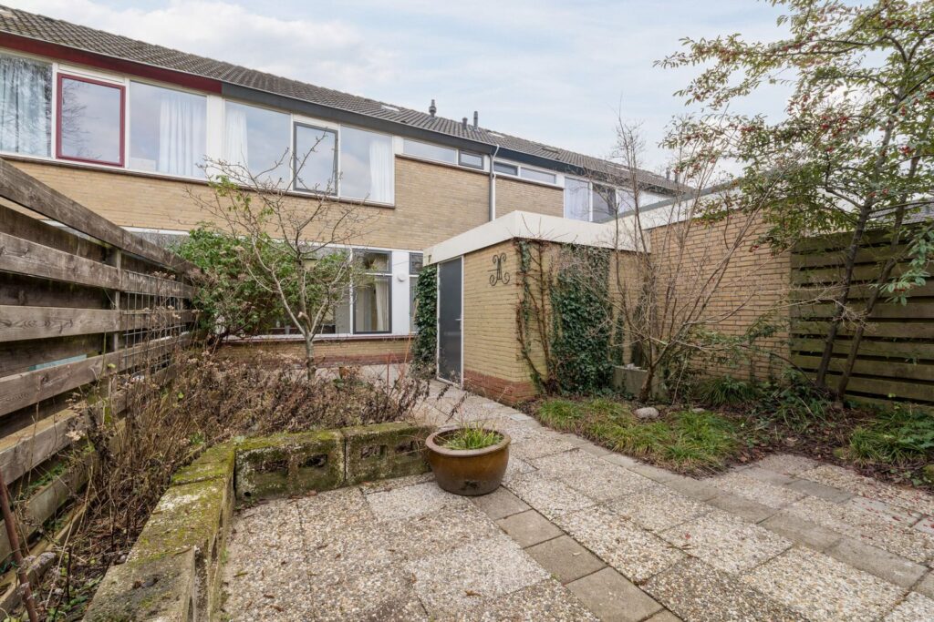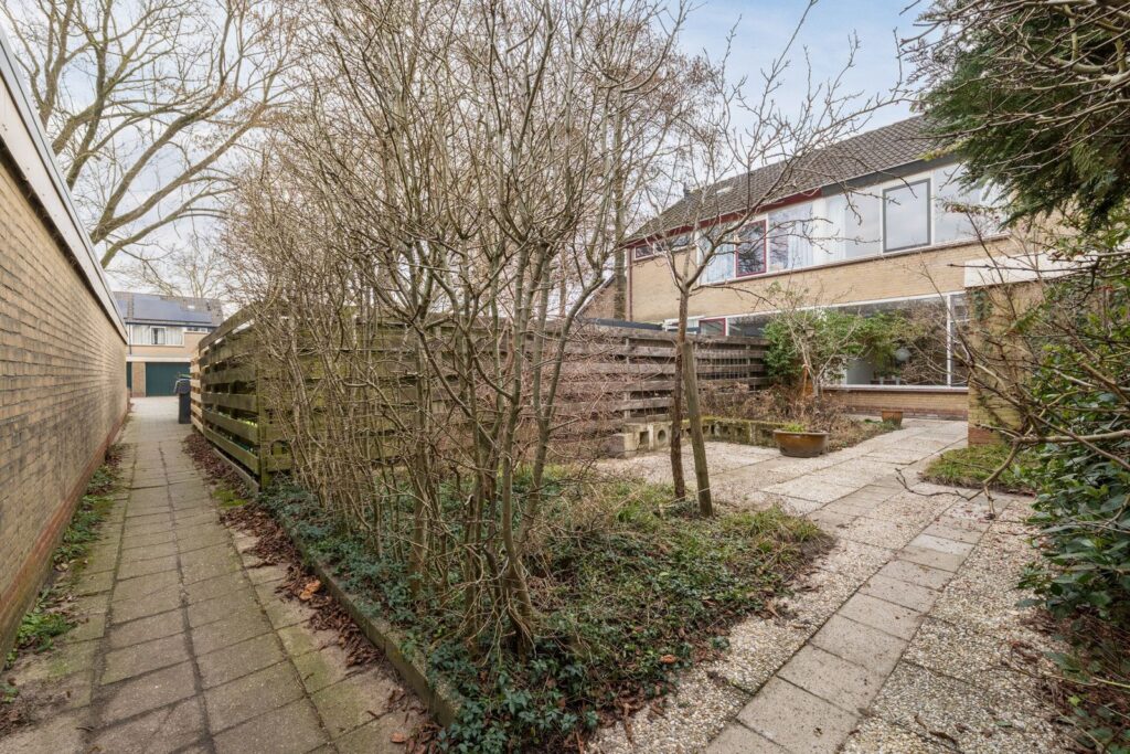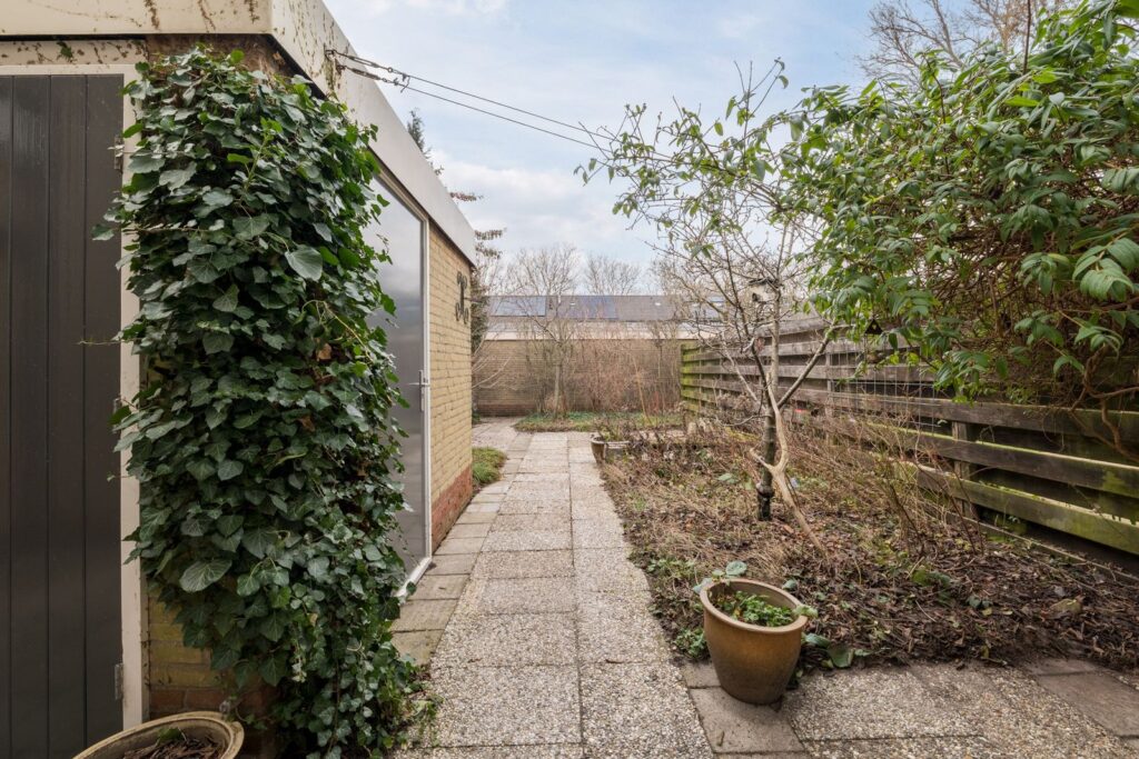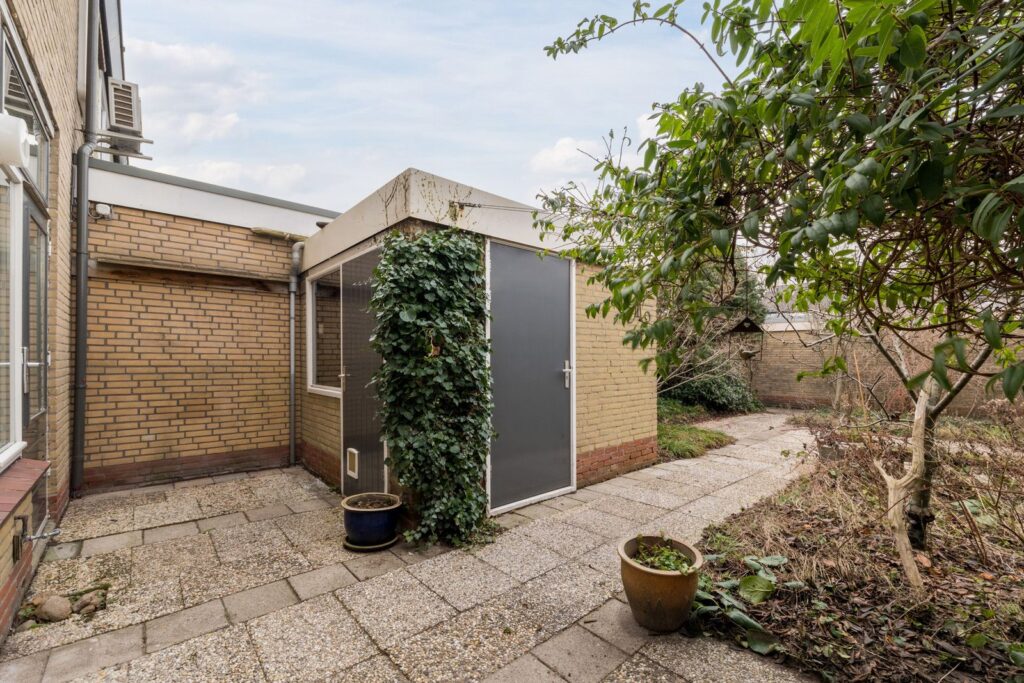 De achtertuin is voorzien van een vrijstaande stenen schuur met elektra aansluiting en een achterom via een gezamenlijke steeg. Aan de achtergevel is een buitenlamp en waterpunt. In de achtertuin is al vroeg achterin de eerste zon en in de zomer is er tot eind van de middag vlak bij het huis zon.