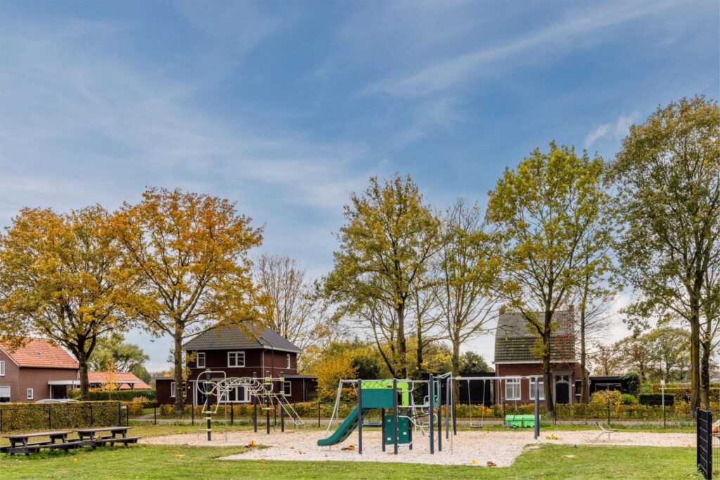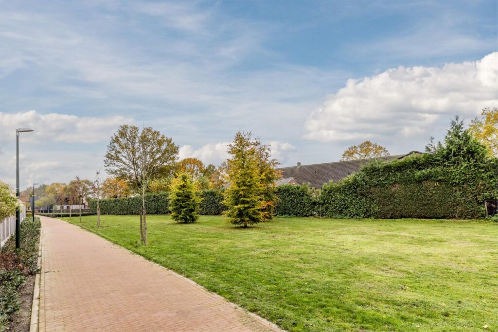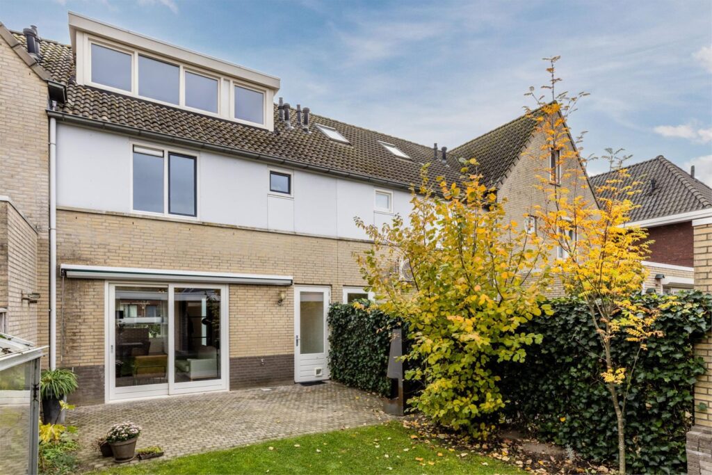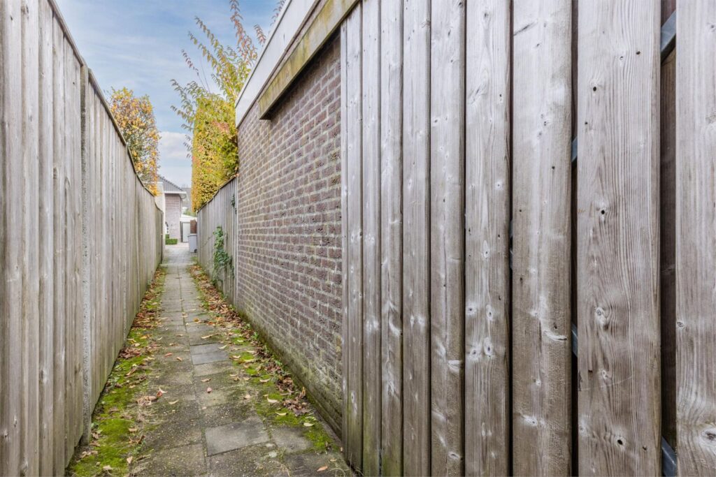 De achtertuin is volledig omsloten en biedt veel privacy. Er is een betegeld terras, een gazon en een overdekt gedeelte naast de schuur met elektra. Via de brede schuifpoort aan de achterzijde is de tuin ook toegankelijk voor bijvoorbeeld een motor.