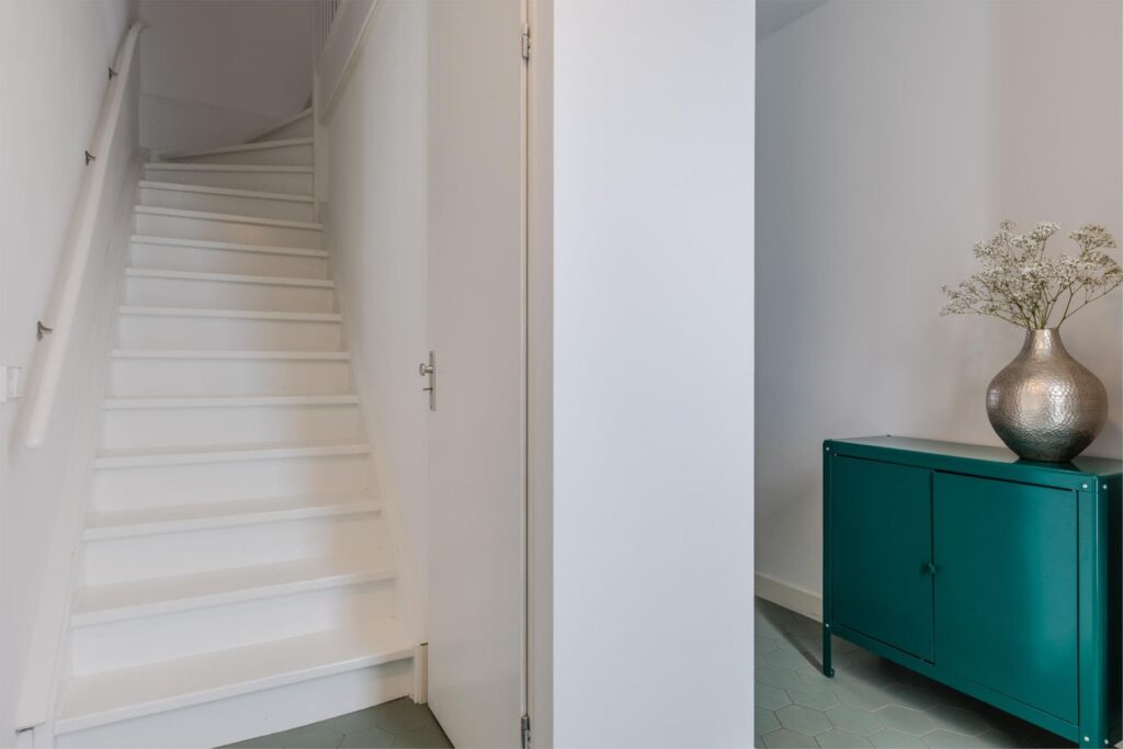 Onder de trap bevindt zich een ruime voorraadkast, handig voor extra opslag.