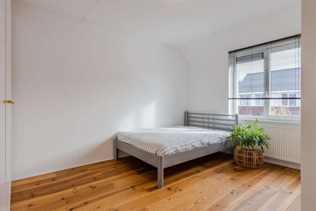 Op de eerste verdieping zijn drie slaapkamers. Daarnaast is er een ruime badkamer, die in 2010 is vergroot en vernieuwd. De badkamer beschikt over een bad, een aparte douche, een toilet en een ingebouwde kast. Alle ramen zijn voorzien van gordijnen of lamellen.