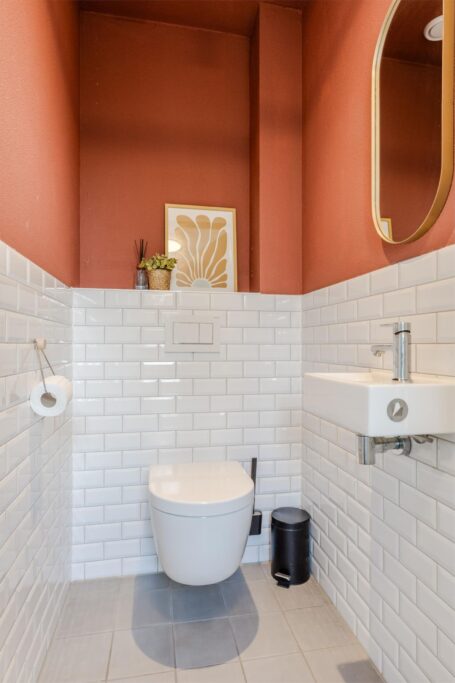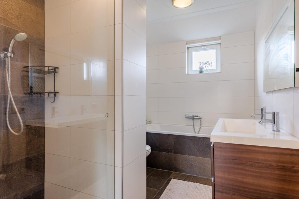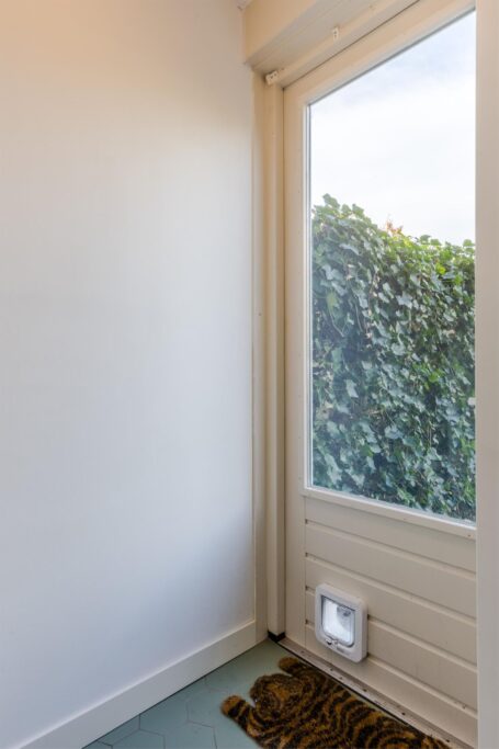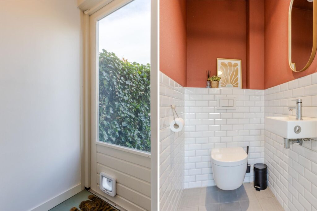 Aan de achterzijde een kleine hal met wc, vernieuwd in 2020, en een deur naar buiten. Evenals de mogelijkheid om via de schuifdeur naar de achtertuin te gaan.