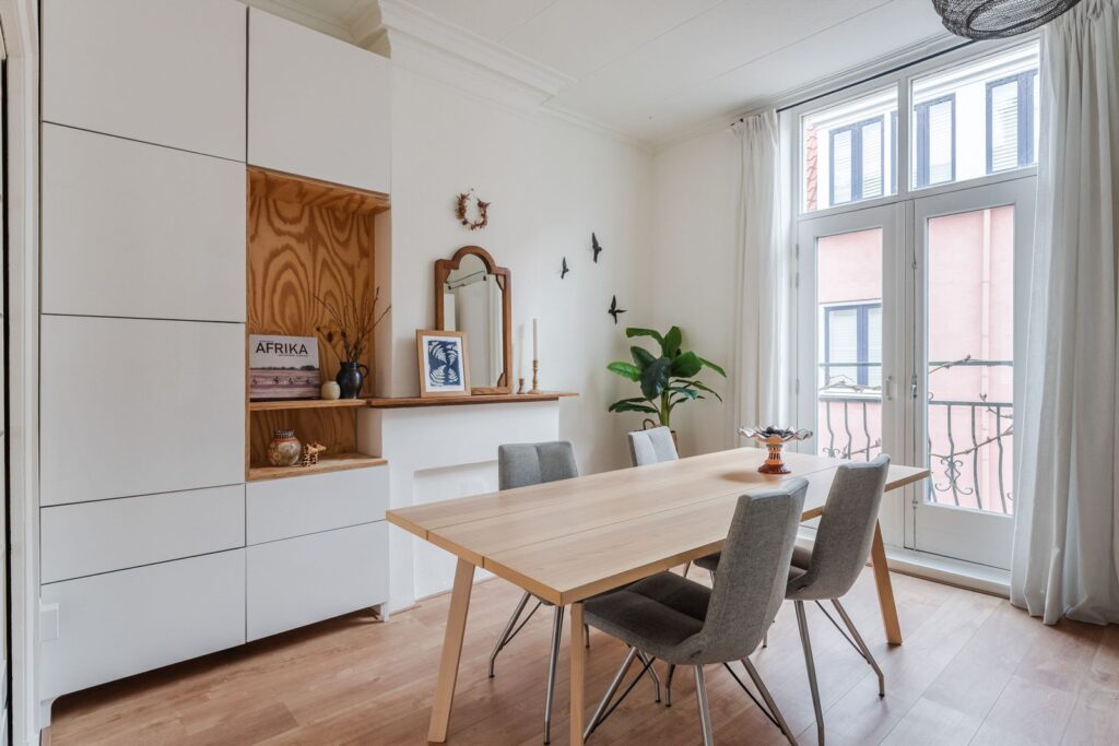 The surroundings complete the picture: cozy greengrocers, multicultural eateries offering Moroccan, Surinamese, and Italian cuisine within easy reach, and at the end of the street our favorite coffee spot, “Koffie en Ik.” Across the street there is a small park, perfect for picnics, featuring a windmill and a petting zoo – ideal for children and relaxing outdoors.