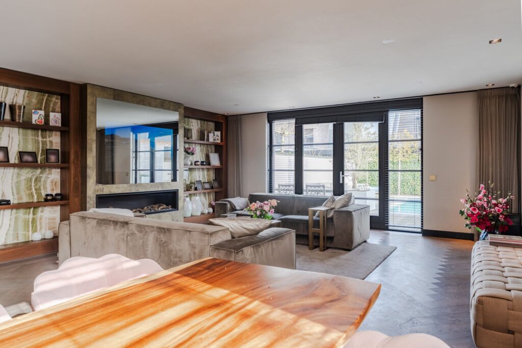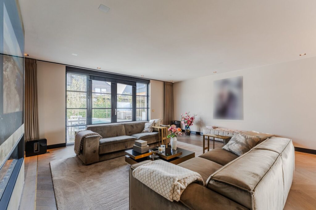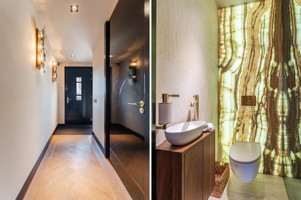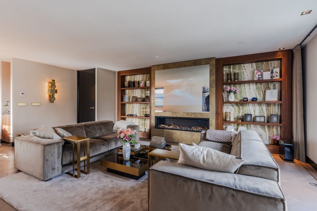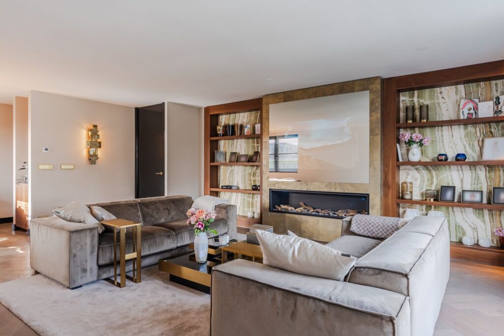 De royale woonkamer is een echte eyecatcher, afgewerkt met exclusief marmer epoxy uit Iran, doorgetrokken in zowel de living als het toilet, wat zorgt voor een unieke en luxe uitstraling. De open design keuken is uitgerust met hoogwaardige Gaggenau-apparatuur en vormt het hart van de woning.