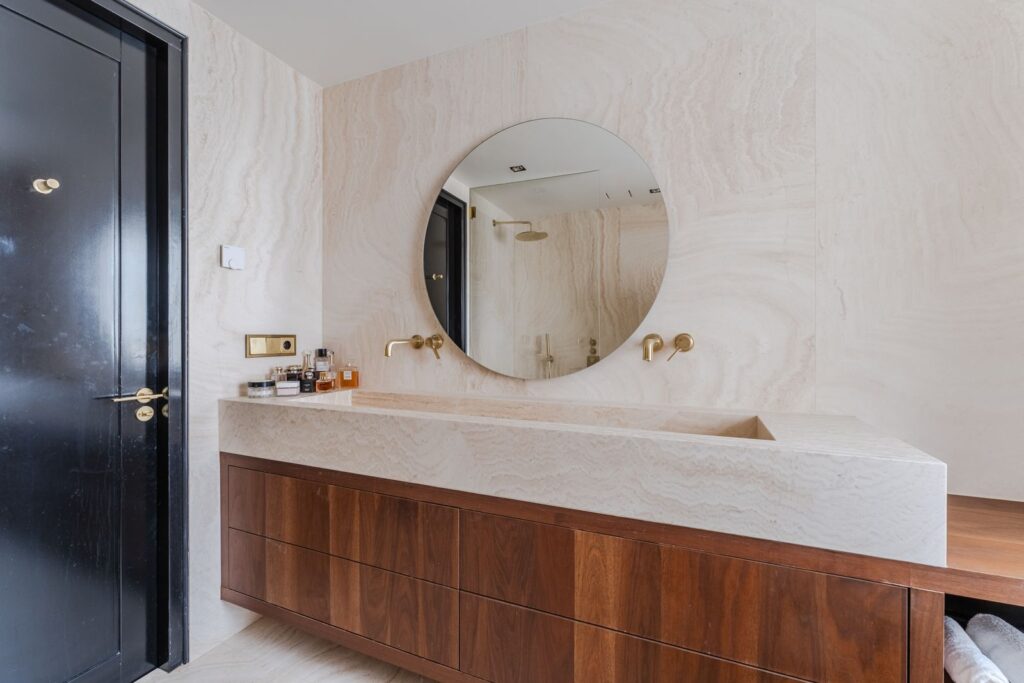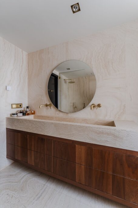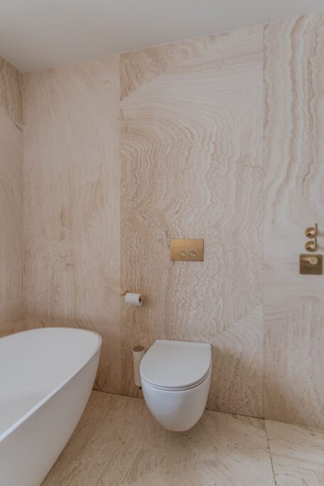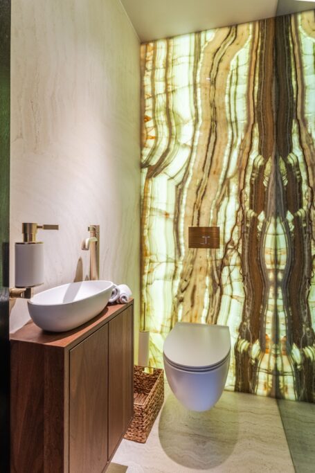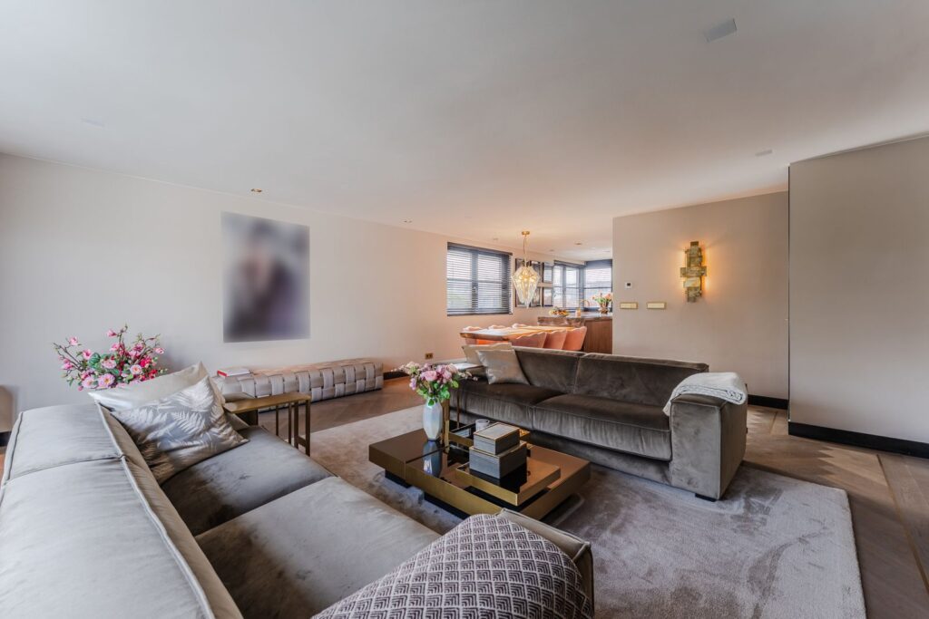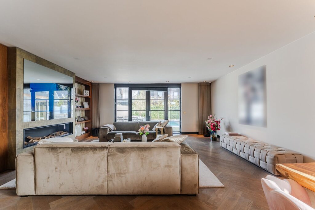 De royale woonkamer is een echte eyecatcher, afgewerkt met exclusief marmer epoxy uit Iran, doorgetrokken in zowel de living als het toilet, wat zorgt voor een unieke en luxe uitstraling. De open design keuken is uitgerust met hoogwaardige Gaggenau-apparatuur en vormt het hart van de woning.
