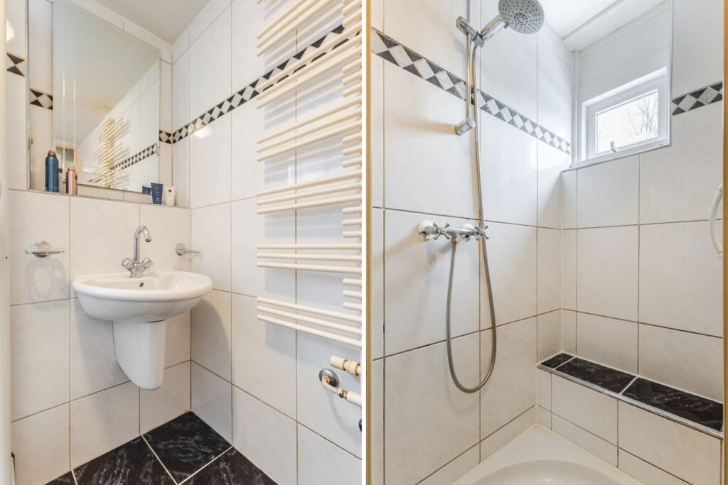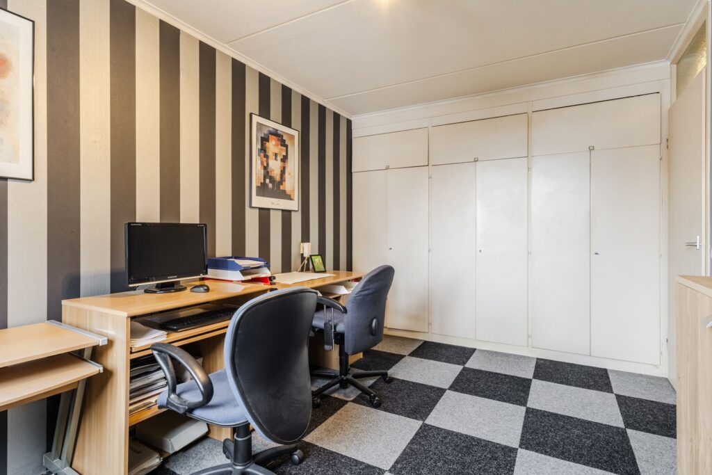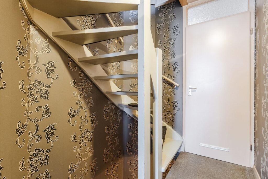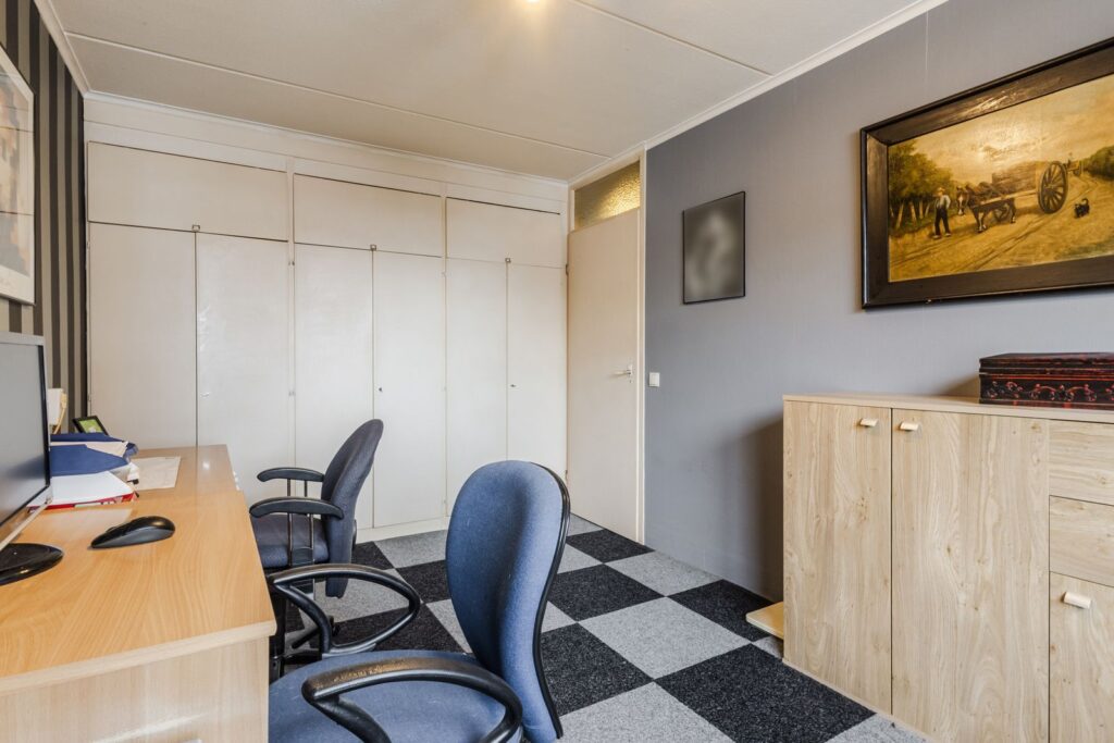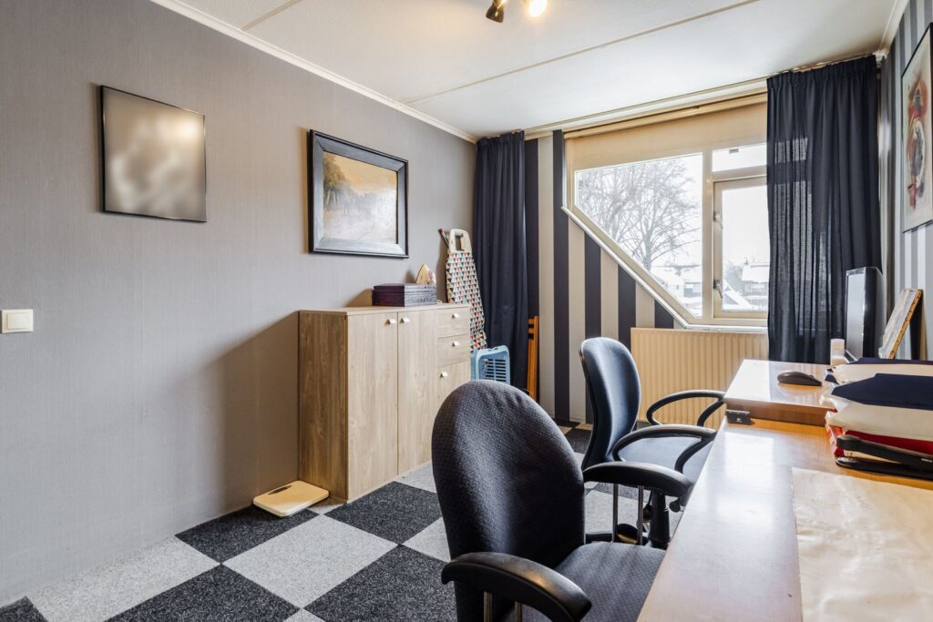 De tweede verdieping bestaat uit een overloop/voorzolder met de opstelling van de cv-combiketel (2020) en aansluitingen voor de wasapparatuur. Daarnaast is hier een volwaardige derde slaapkamer met dakraam en extra bergruimte.