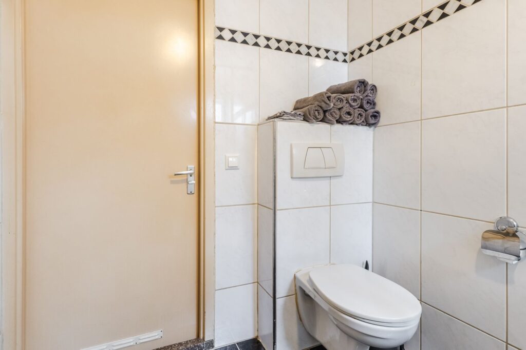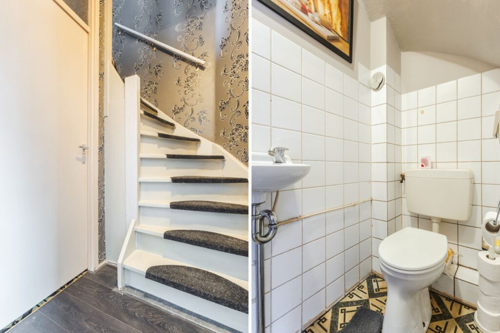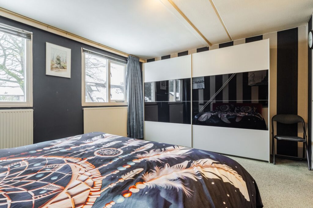 Op de eerste verdieping zijn twee ruime slaapkamers aanwezig. De slaapkamer aan de voorzijde is opvallend groot en beschikt over een vaste kastenwand. De geheel betegelde badkamer is compleet uitgevoerd met een tweede toilet, wastafel, douchehoek en een designradiator. Via een vaste trap kom je op de tweede verdieping.