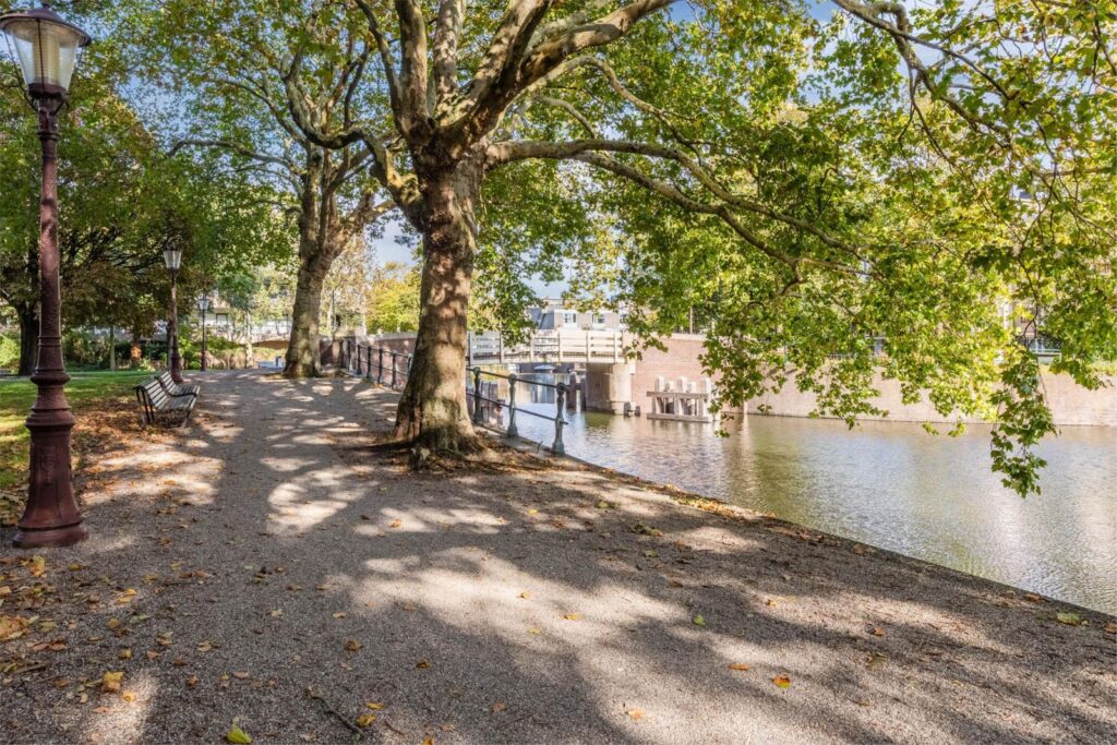 -WONEN AAN HET WATER, MIDDEN IN DE STAD; De achtertuin grenst direct aan het water en biedt een prachtig groen uitzicht. Hier kunt u in alle rust genieten van de zon, de natuur en de stilte, terwijl u toch op loopafstand van het bruisende centrum woont.