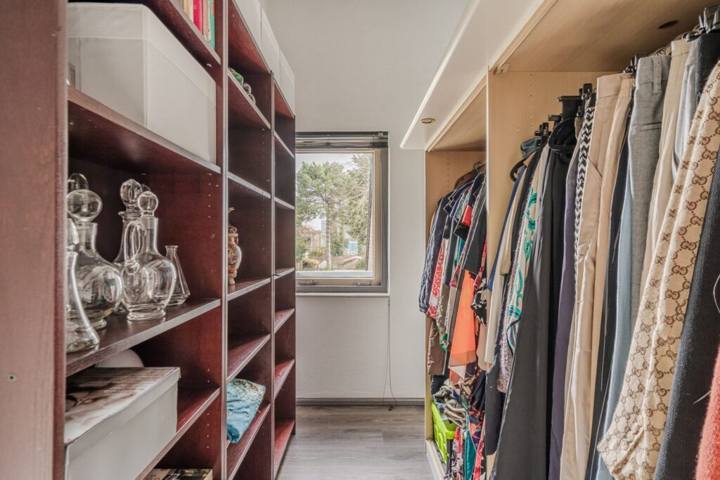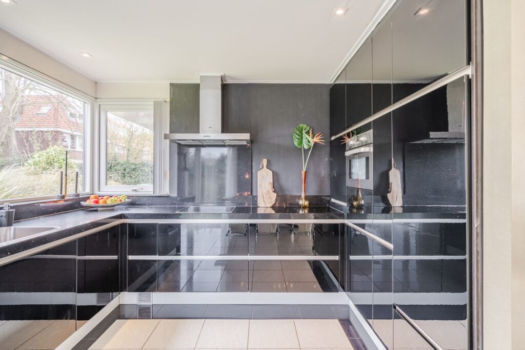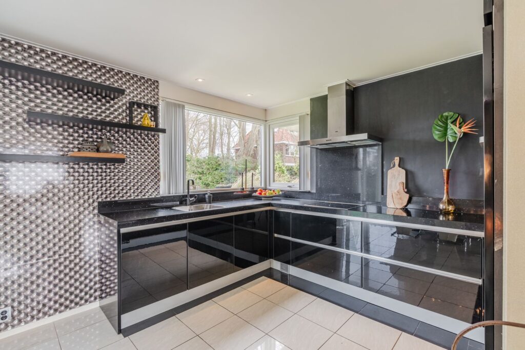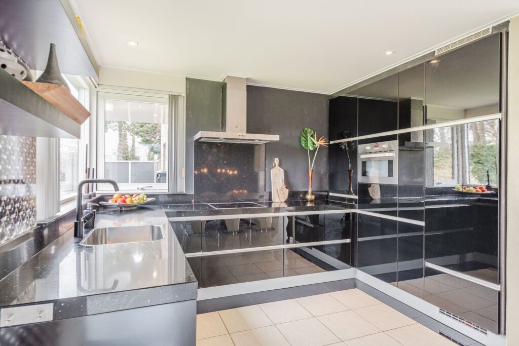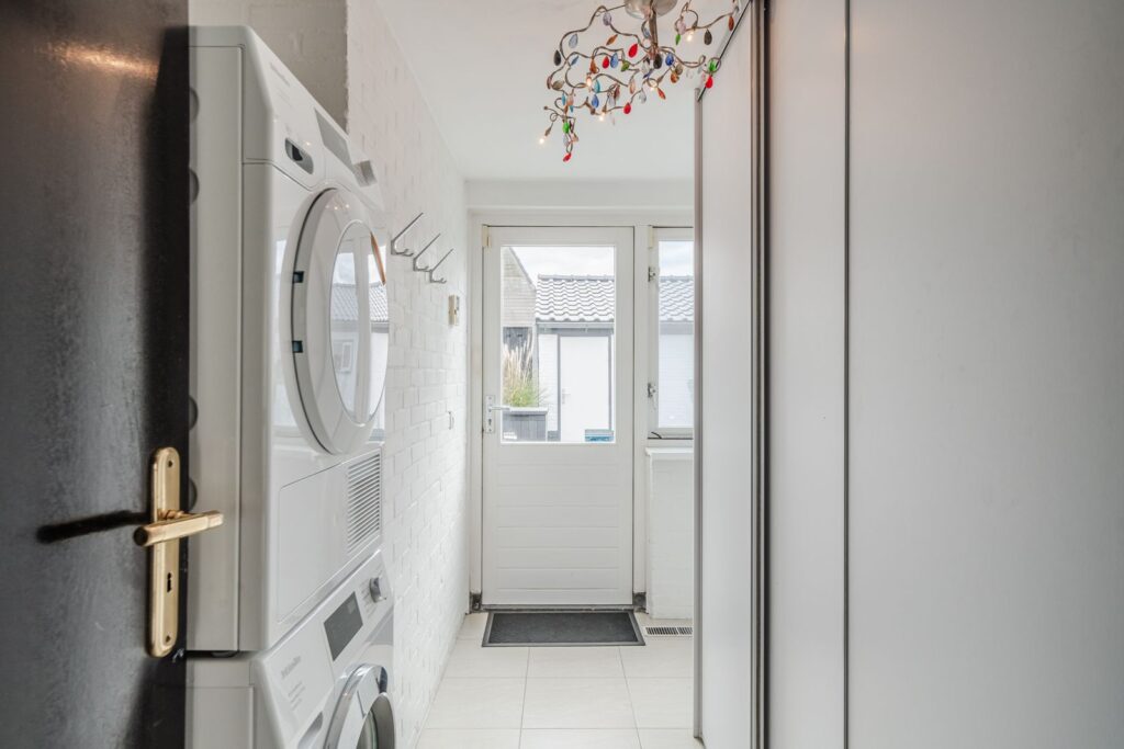 Vervolgens bevindt zich op de benedenverdieping nog een fijne bijkeuken met schuifkasten en genoeg ruimte voor een wasmachine en droger.