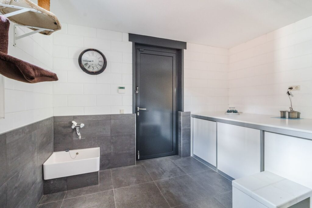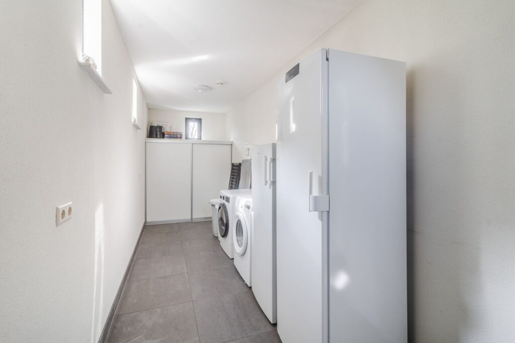 Bijkeuken met opstelplaats voor wasmachine en droger.