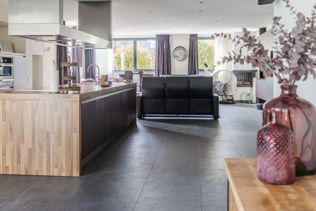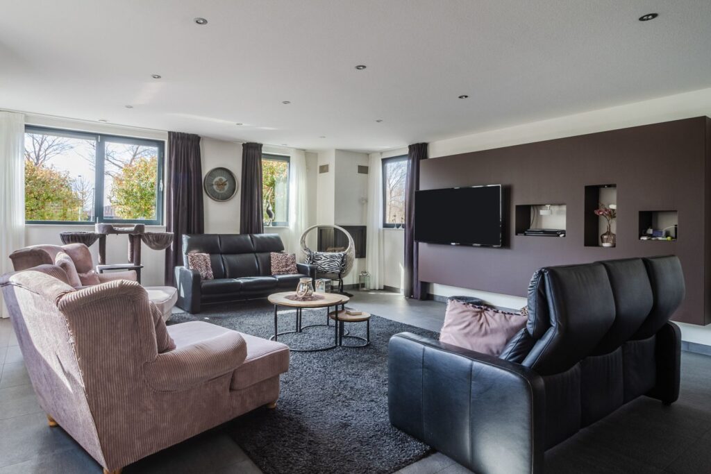 Riante living (ca.100m2) onderverdeeld in: