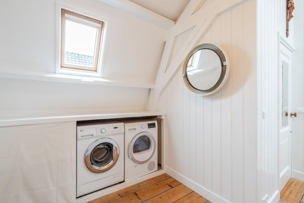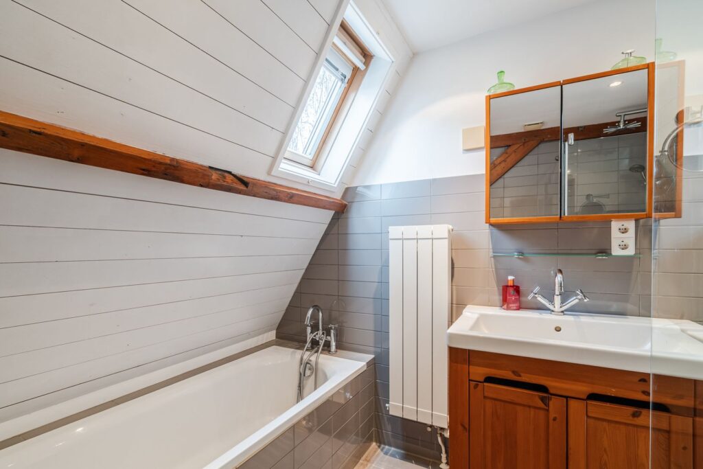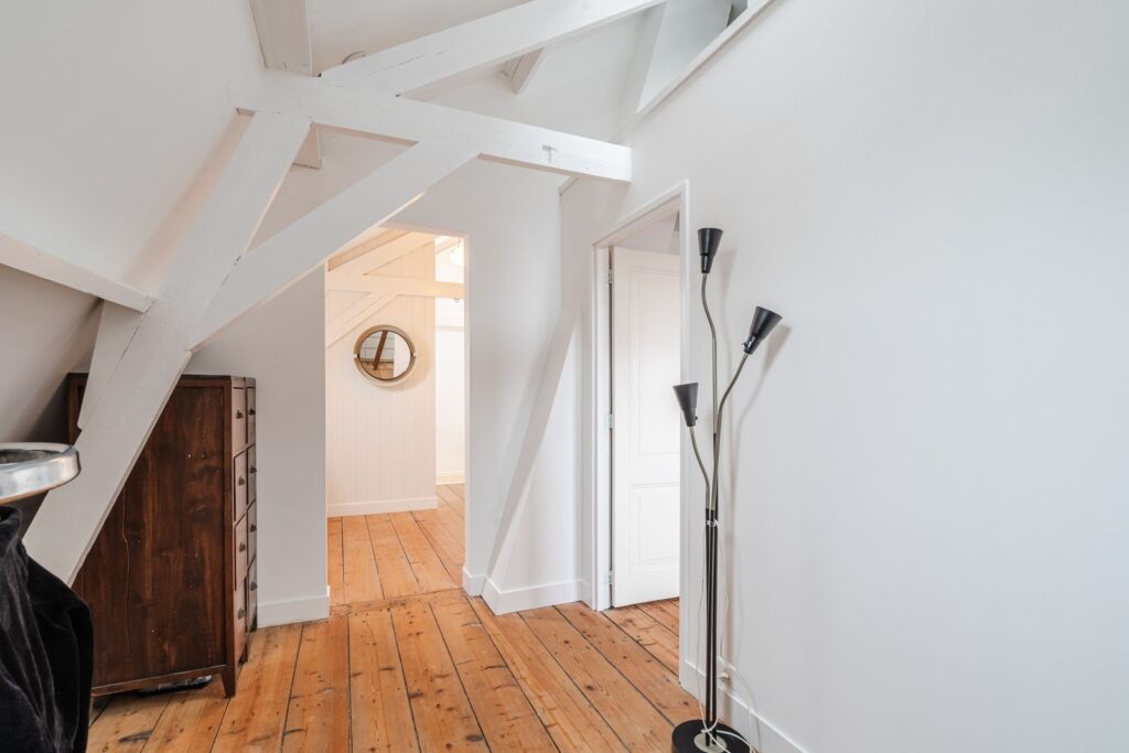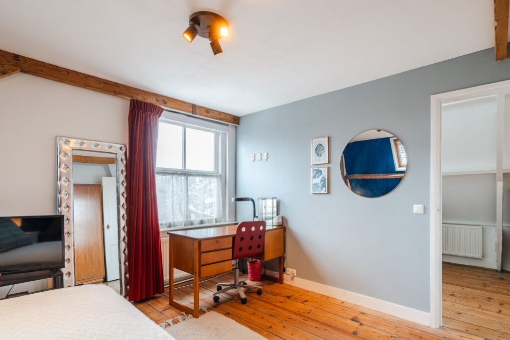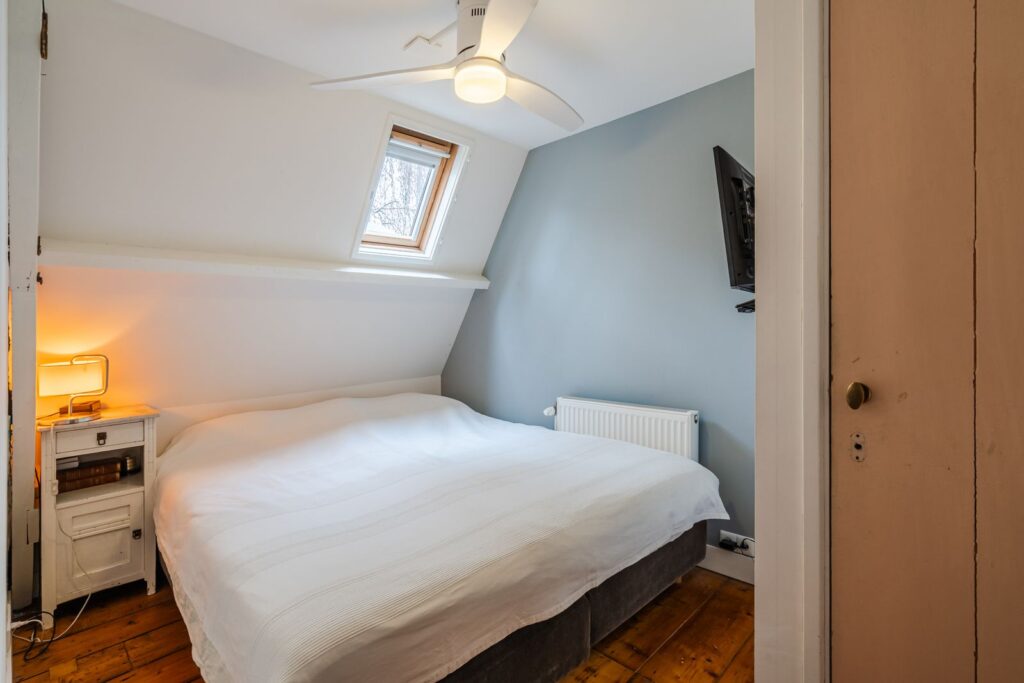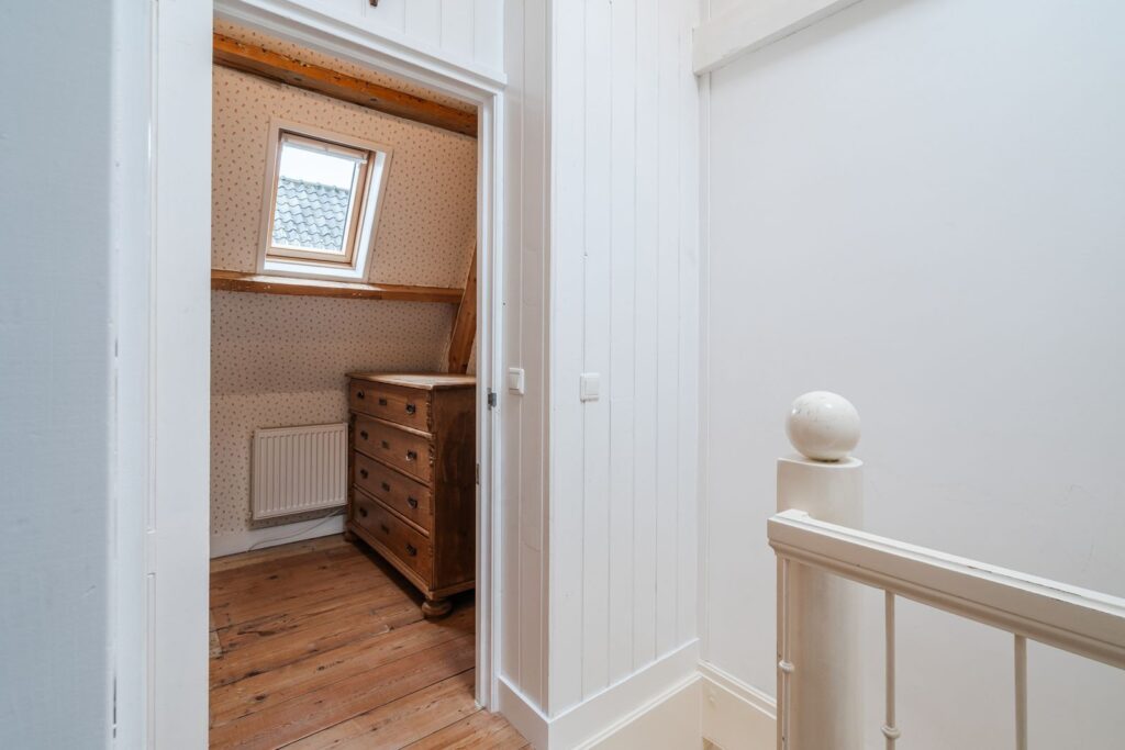 Boven 2 slaapkamers bevindt zich een grote vliering die gebruikt wordt als opbergruimte.