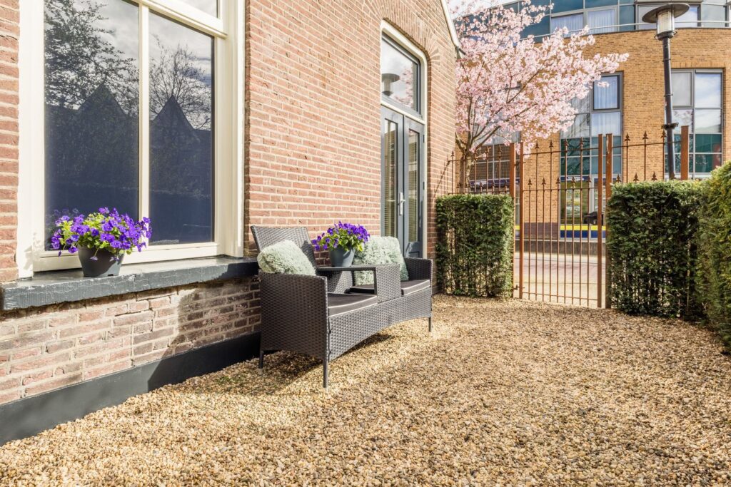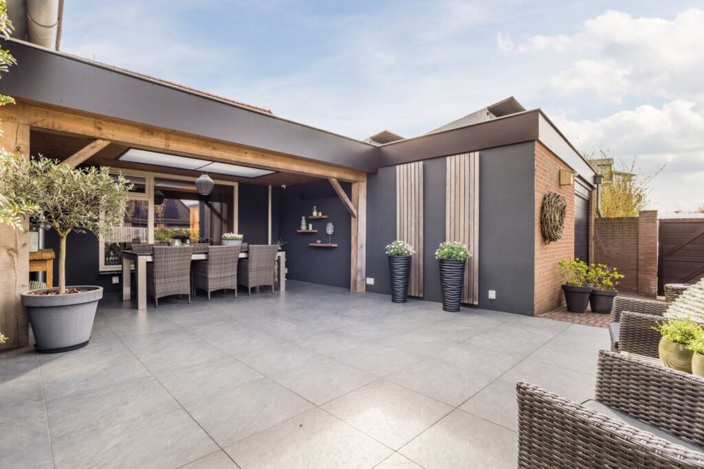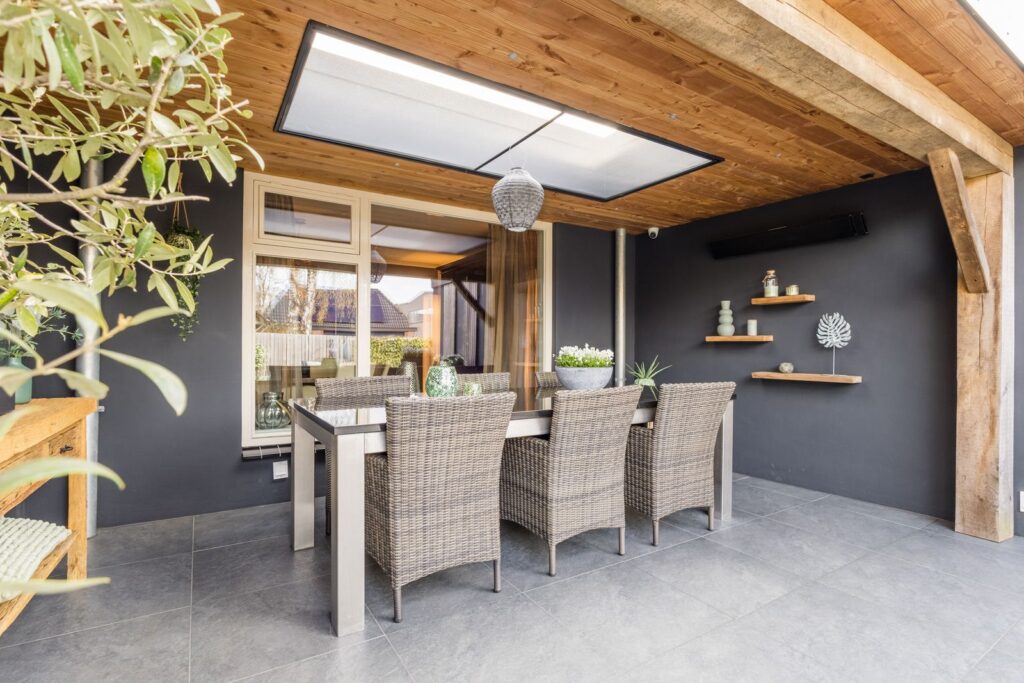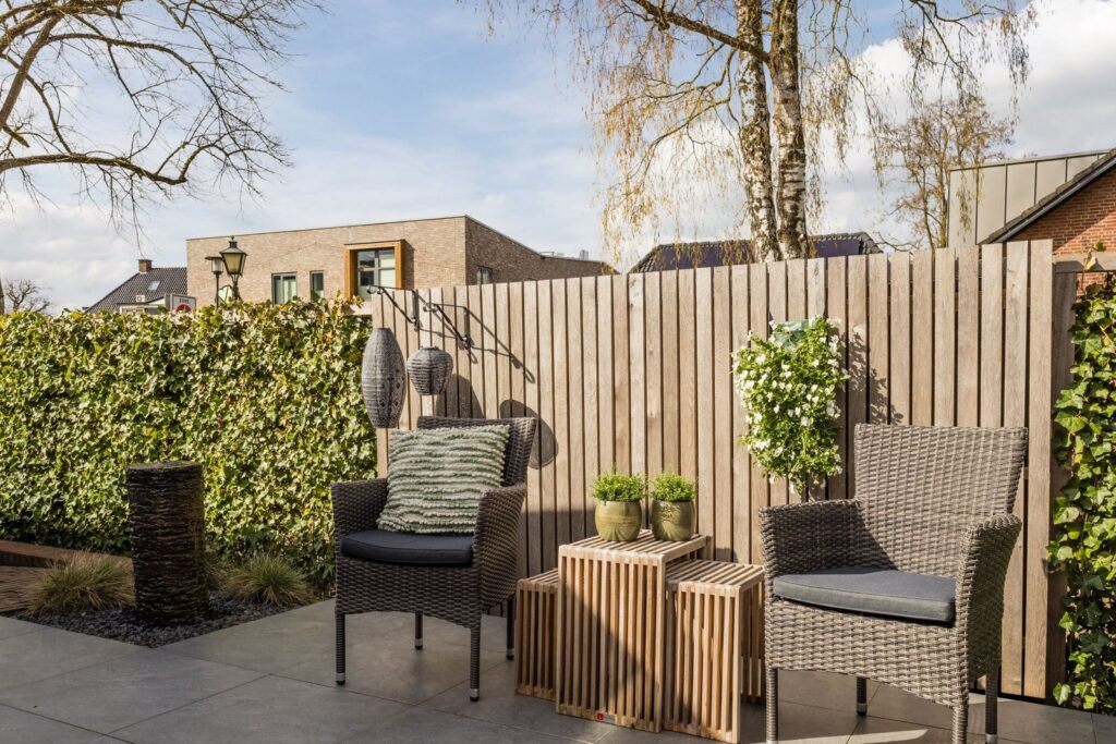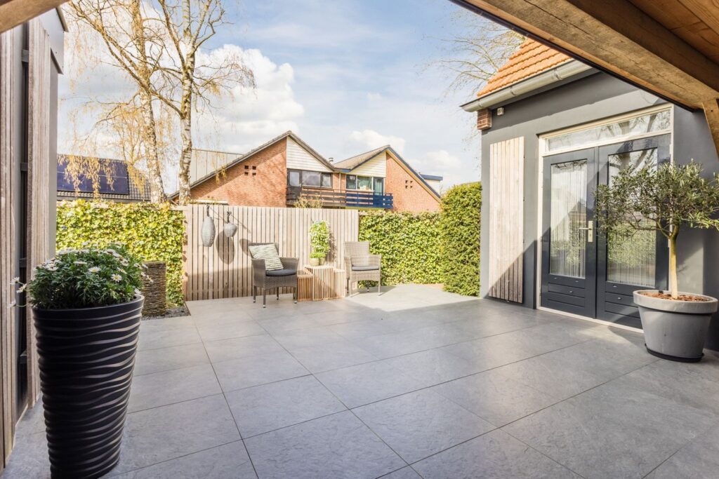 De beschutte, onderhoudsvriendelijke tuin biedt volop privacy en meerdere zitplekken in zowel zon als schaduw. De ruime overkapping met lichtkoepel maakt het mogelijk om een groot deel van het jaar heerlijk buiten te genieten. Aan de zijkant van de woning bevindt zich een eigen oprit, terwijl aan de andere zijde nog een extra, beschut én zonnig tuingedeelte ligt.