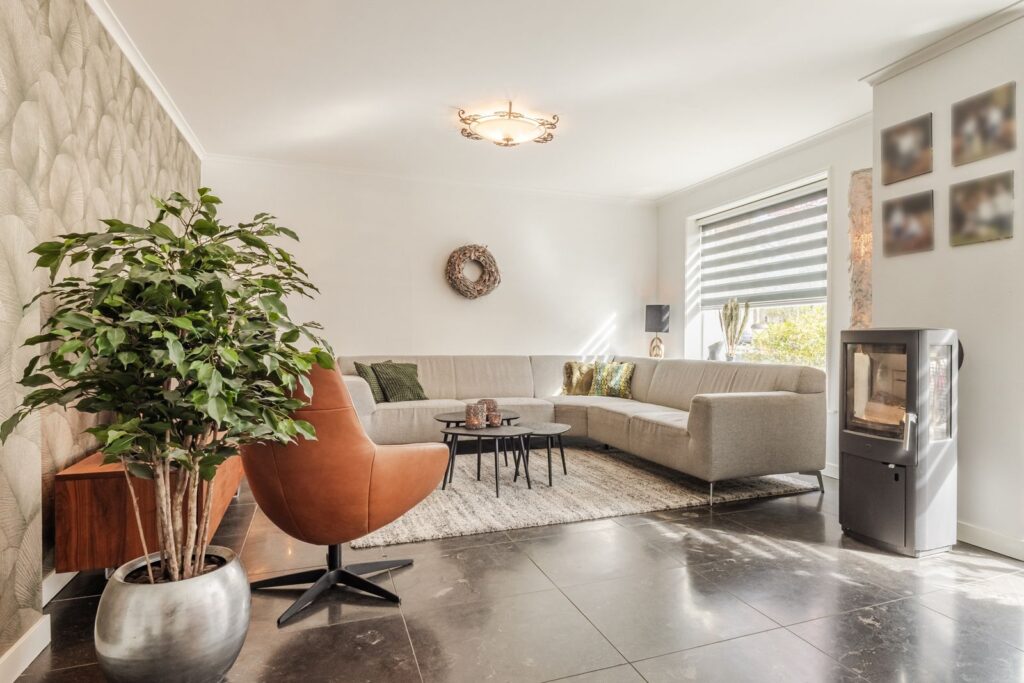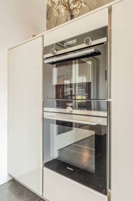 De woning is in 2015 volledig gerenoveerd, geïsoleerd en gemoderniseerd. Hierbij is niets aan het toeval overgelaten: alle elektra en leidingwerk zijn vernieuwd en de afwerking is van hoog niveau. Denk aan strak gestucte plafonds met sierlijsten, vloerverwarming op de begane grond (inclusief badkamers en toiletten) en hoogwaardige materialen zoals natuurstenen vloeren en granieten werkbladen in de keuken. De moderne keuken vormt het hart van de woning en is voorzien van luxe inbouwapparatuur en een stijlvol kookeiland. Via fraaie glas-in-lood deuren staat de keuken in verbinding met de royale eetkamer en met de lichte woonkamer met houtkachel. Grote raampartijen zorgen voor een prettige lichtinval en een ruimtelijk gevoel.