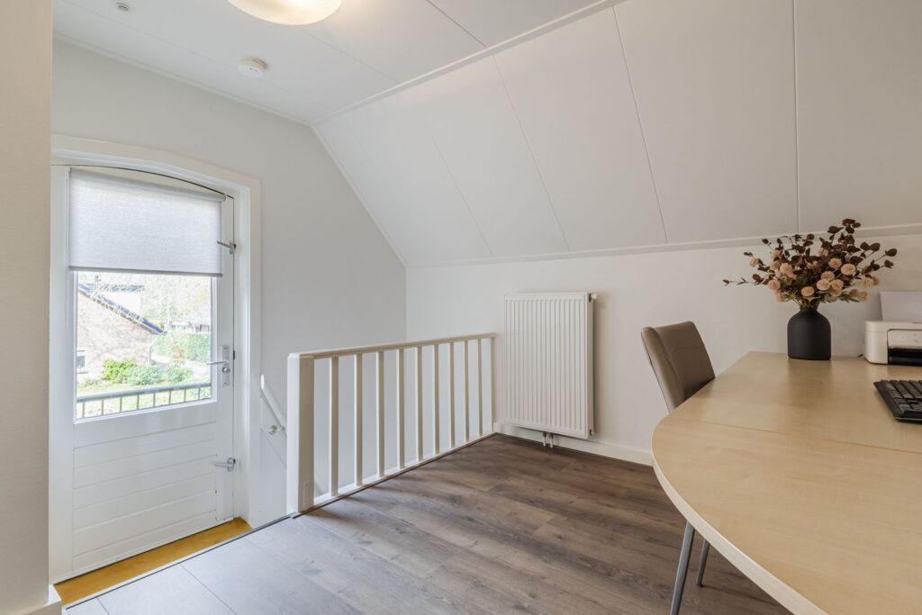 Op de verdieping bevinden zich nog eens drie ruime slaapkamers, een tweede badkamer en een apart toilet. De royale overloop biedt bovendien ruimte voor een werkplek of kantoor aan huis.