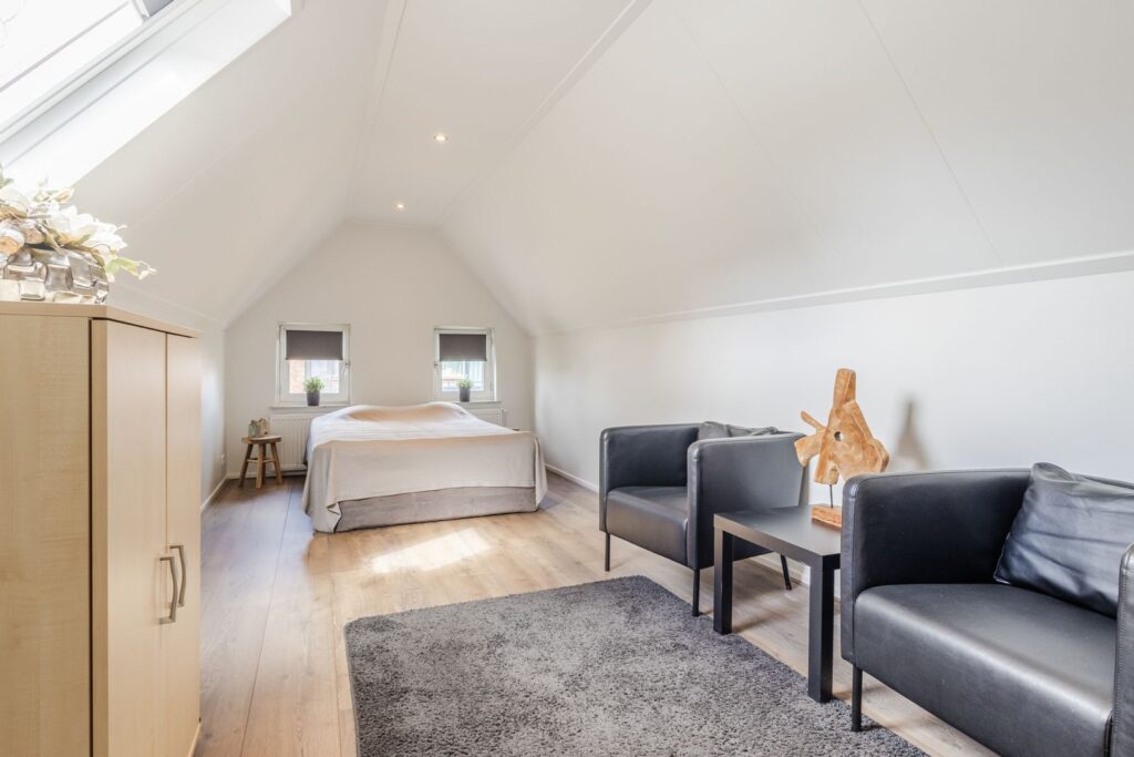 Naast de reeds royale woonoppervlakte van 210 m² beschikt deze woning over een bijzonder ruime schuur van maar liefst 43 m², voorzien van een vaste trap naar een grote zolder van 24 m². Deze waardevolle extra meters – bovenop het woonoppervlak – bieden tal van mogelijkheden, zoals een hobbyruimte, werkplaats of royale opslag. Daarnaast is het mogelijk om vanuit de bestaande slaapkamer op de verdieping een directe doorgang te realiseren, waarmee deze ruimte nog meer bij de woning betrokken kan worden.