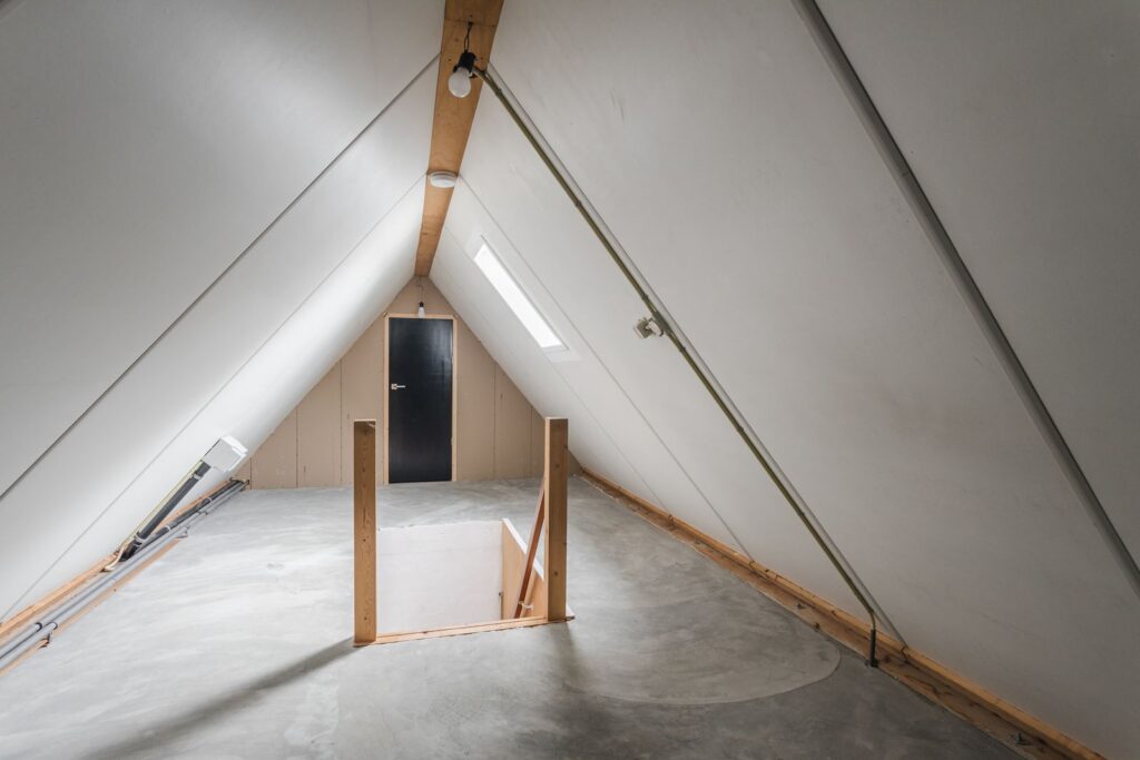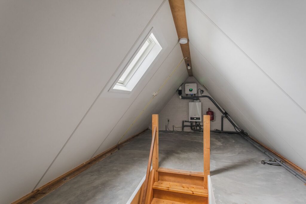 Tweede verdieping: bergzolder met extra kamer (bereikbaar via een vaste trap), CV-installatie en omvormer voor de zonnepanelen.