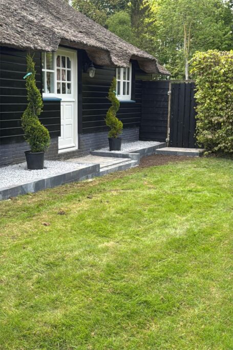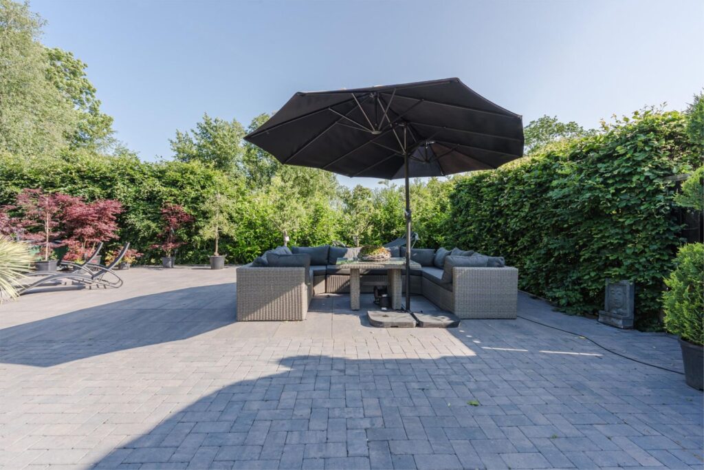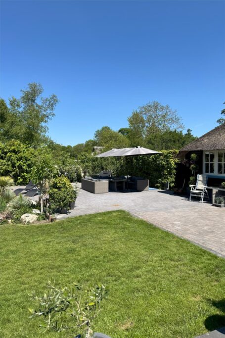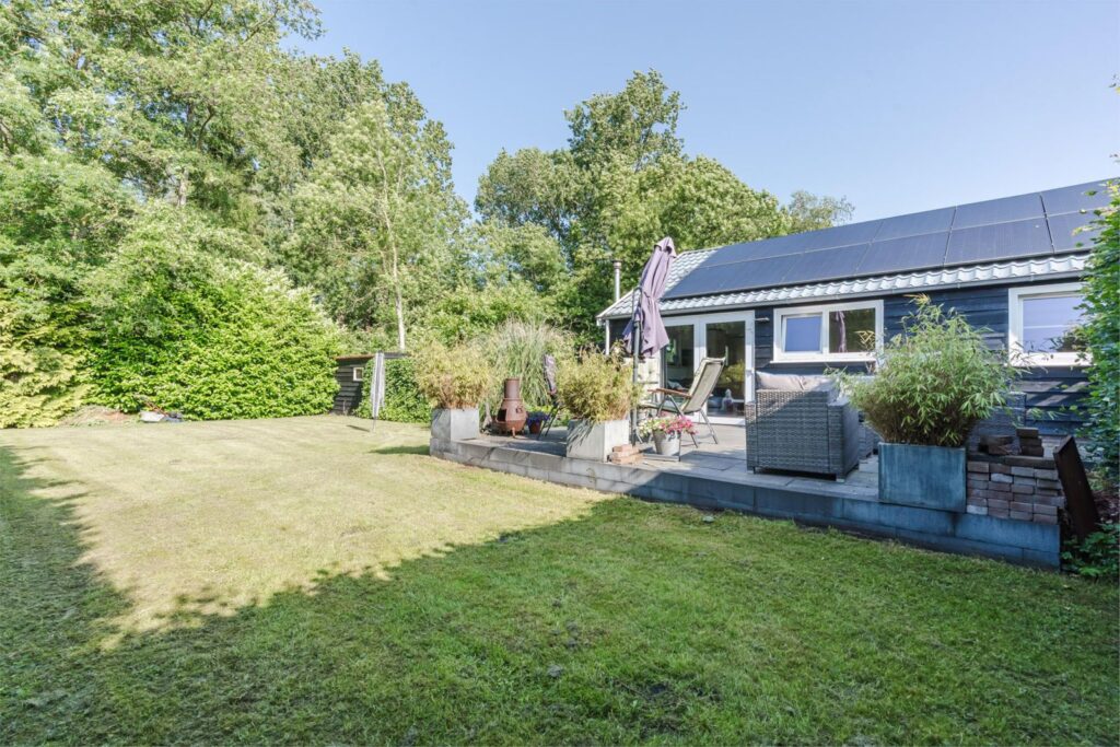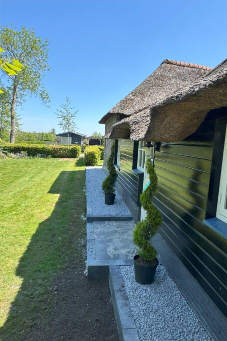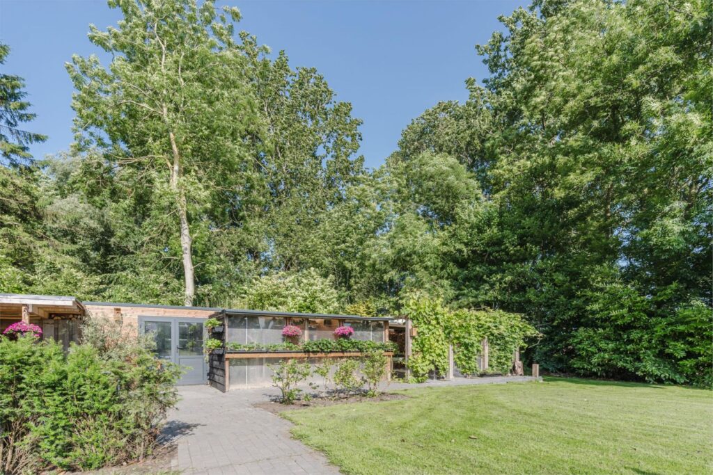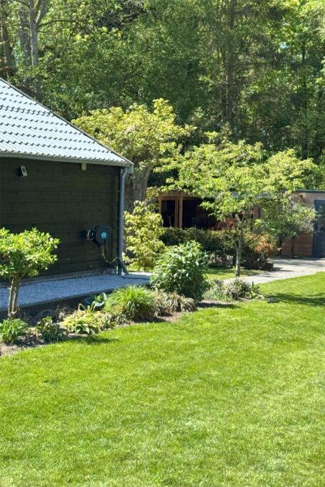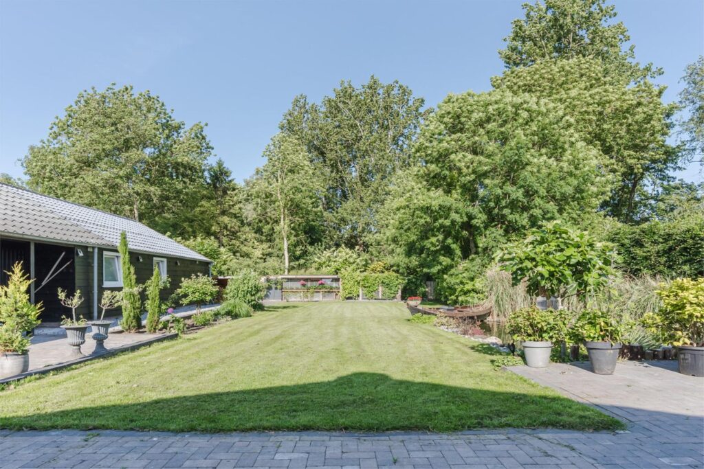Schitterend aangelegde, verzorgde tuin met veel privacy, gazon, bloeiende struiken en bomen. Fraai aangelegde zeer royale en brede terrassen grenzend aan vijverpartij. De grote houten schuur welke aan de achterkant is ingericht voor tweede bewoning / mantelzorg beschikt over openslaande deuren en een separate loopdeur, voldoende elektrapunten en, 2 buitenkranen. De totale kavel is 2.504 m2. Voldoende privé parkeermogelijkheden op eigen erf en een eigen aanlegplaats voor uw boot of sloep. Achterzijde van de kavel wordt afgescheiden door een royale overkapping voor opslag hout voor de kachel / grasmaaier en minitrekker. Tevens geïntegreerd in de overkapping is een blokhut welke thans dienst doet als vogelverblijf.