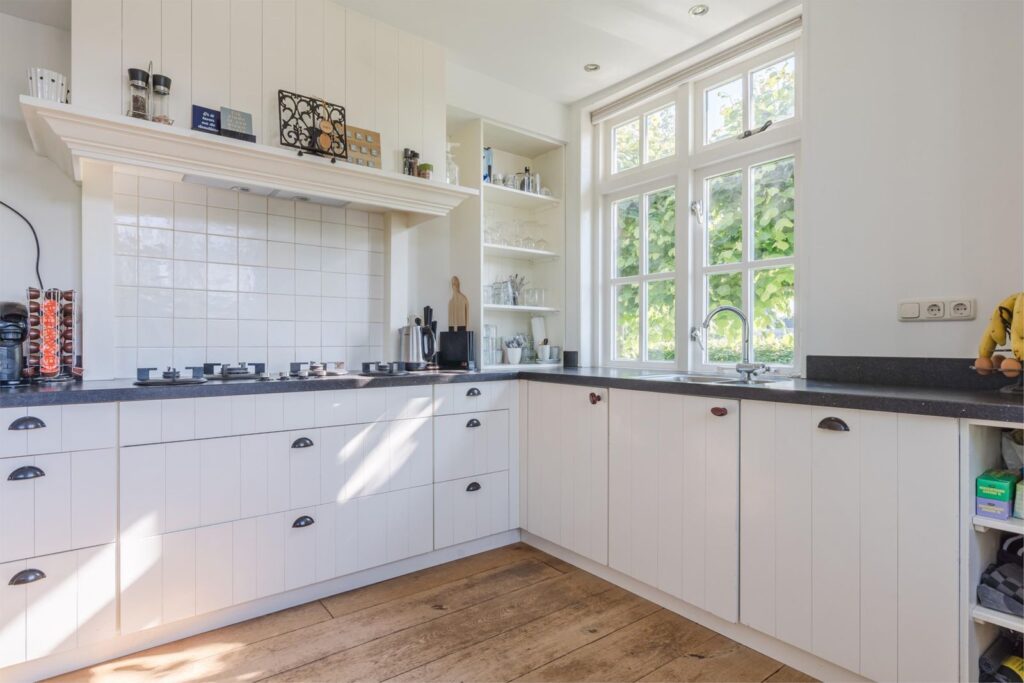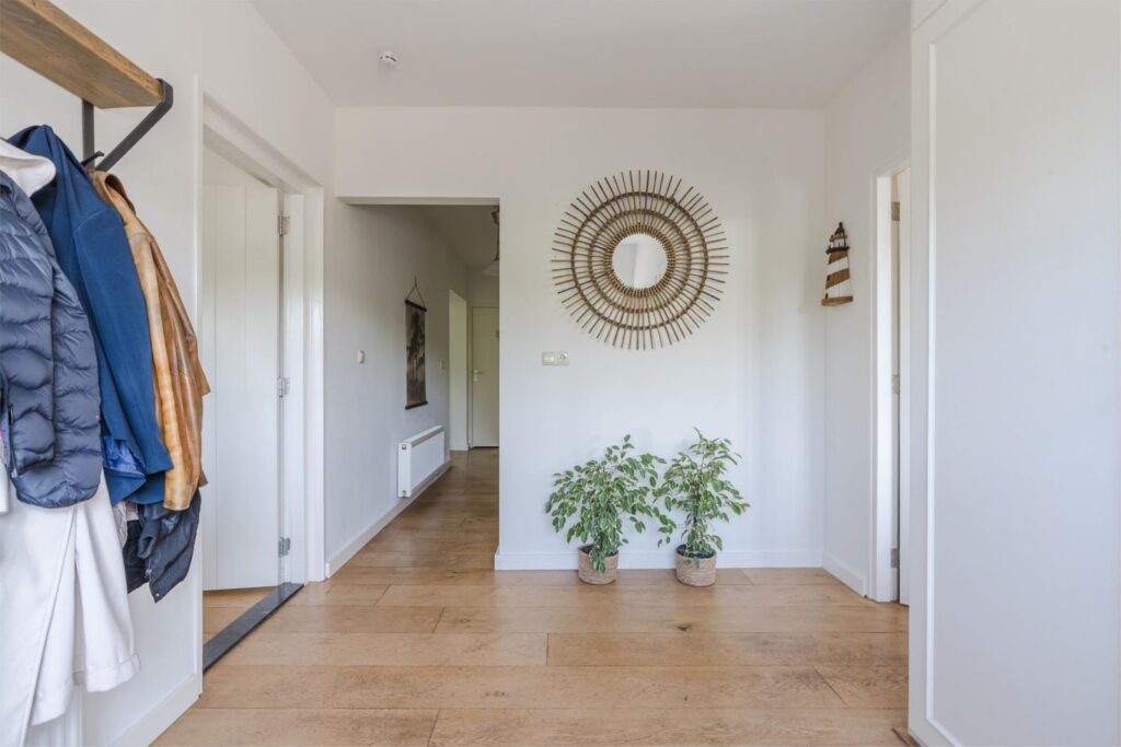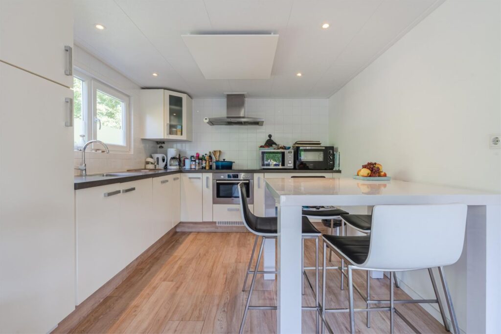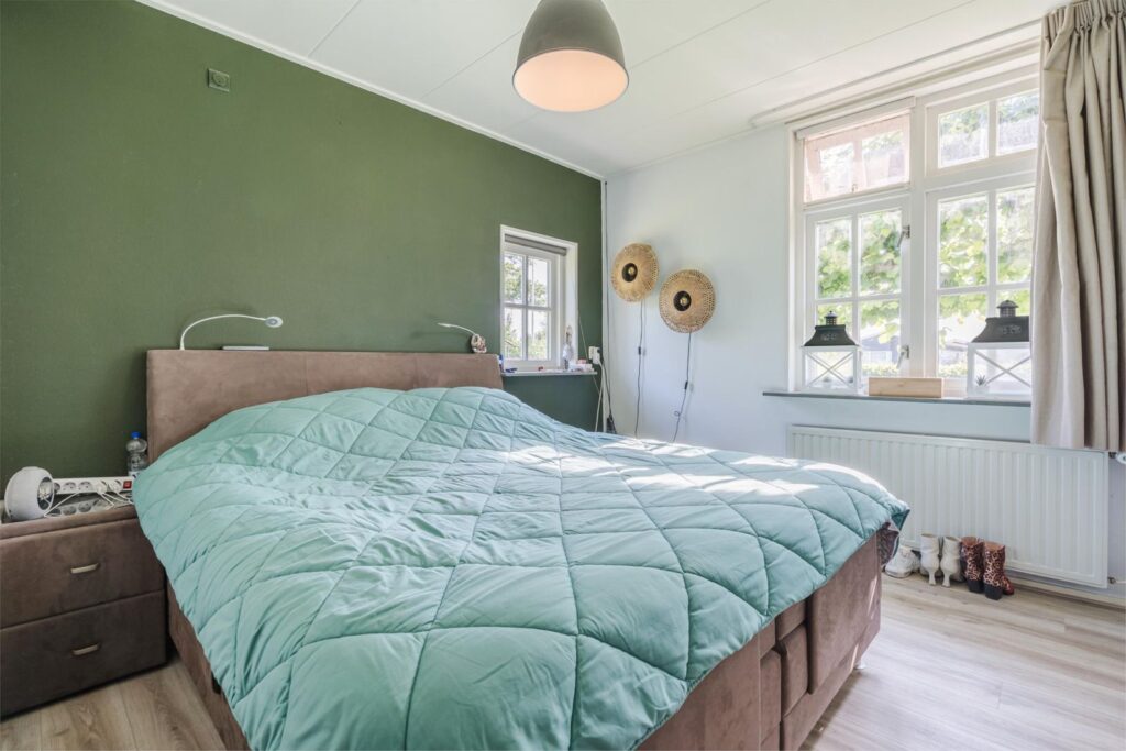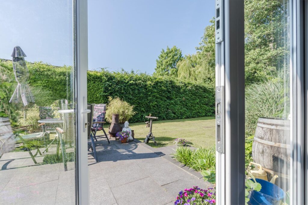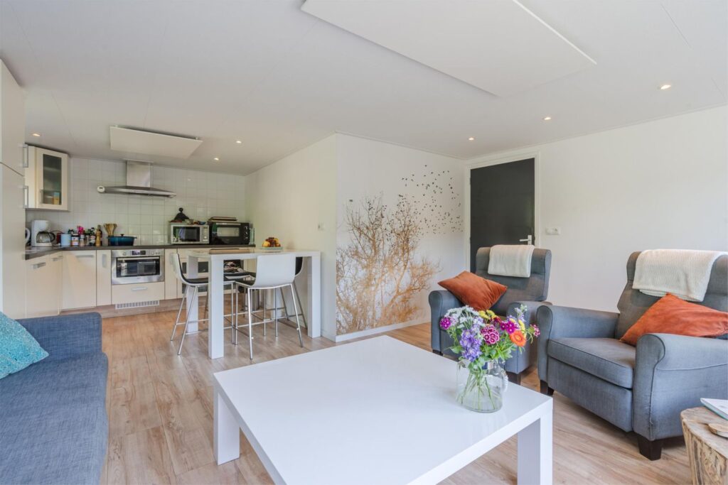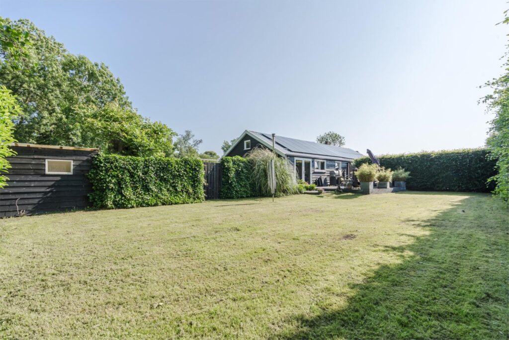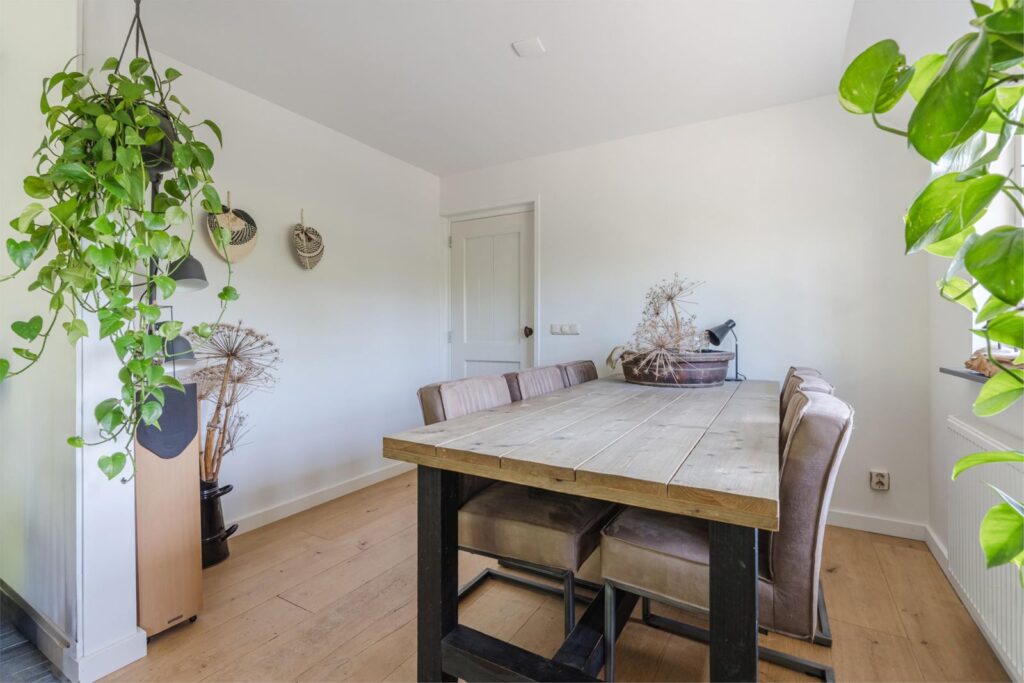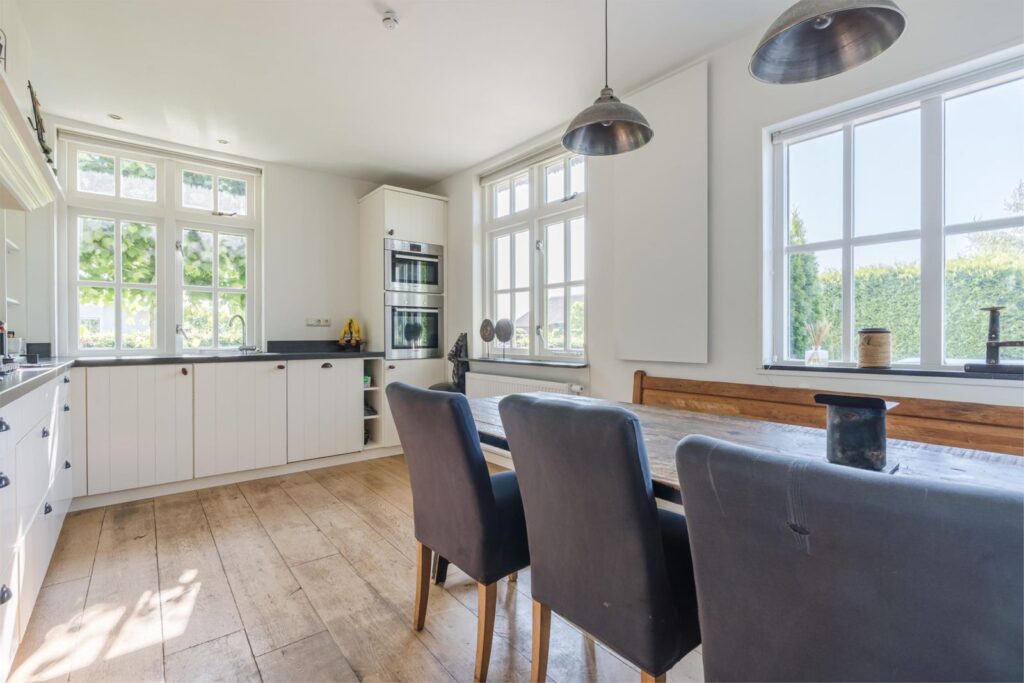 Zij-entree met royale hal die in directe verbinding staat met de royale woonkamer en woonkeuken, toiletruimte, zeer royale slaapkamer met kledingkast, moderne badkamer met inloopdouche, dubbele wastafel, royaal bad en hangend toilet en 2 x een werkkamer/opslag of slaapkamer. De sfeervolle lichte woonkamer is uitgerust met nog originele elementen en gesitueerd aan de achterzijde van de woning met openslaande tuindeuren en directe toegang tot het zeer royale terras en fraai aangelegde tuin met vijverpartij. Woonkamer is recent geheel opnieuw gesaust, voorzien van houtenvloer en wordt heerlijk verwarmd (naast evt. CV als bijverwarming) door in 2024 aangekochte speksteen kachel. Aan de voorzijde van de woning vind men de woonkeuken welke is voorzien van diverse inbouwapparatuur als een 4-pits geïntegreerd gasfornuis, oven, magnetron, afzuigschouw, vaatwasser, inbouw bonen koffiezetapparaat en ladenkoelkast.