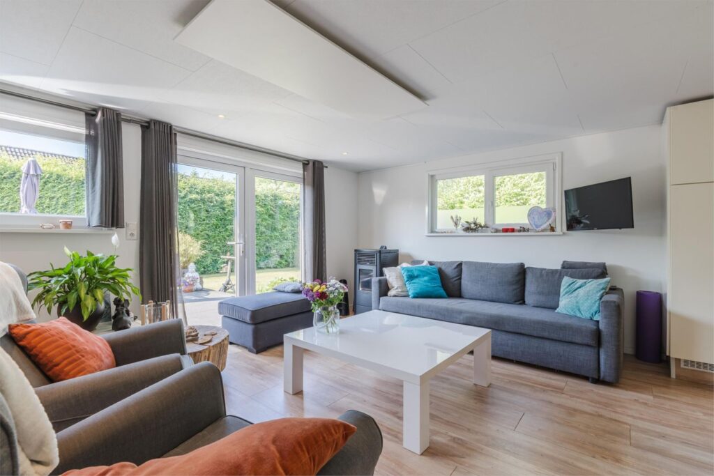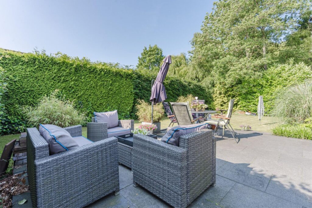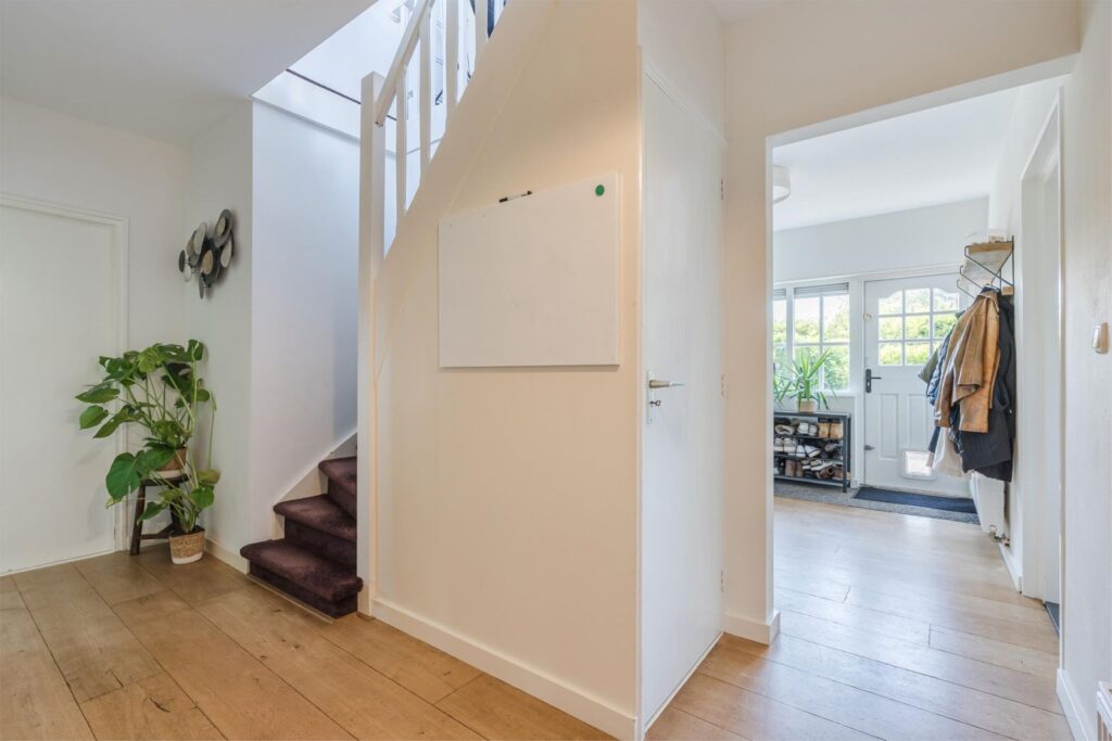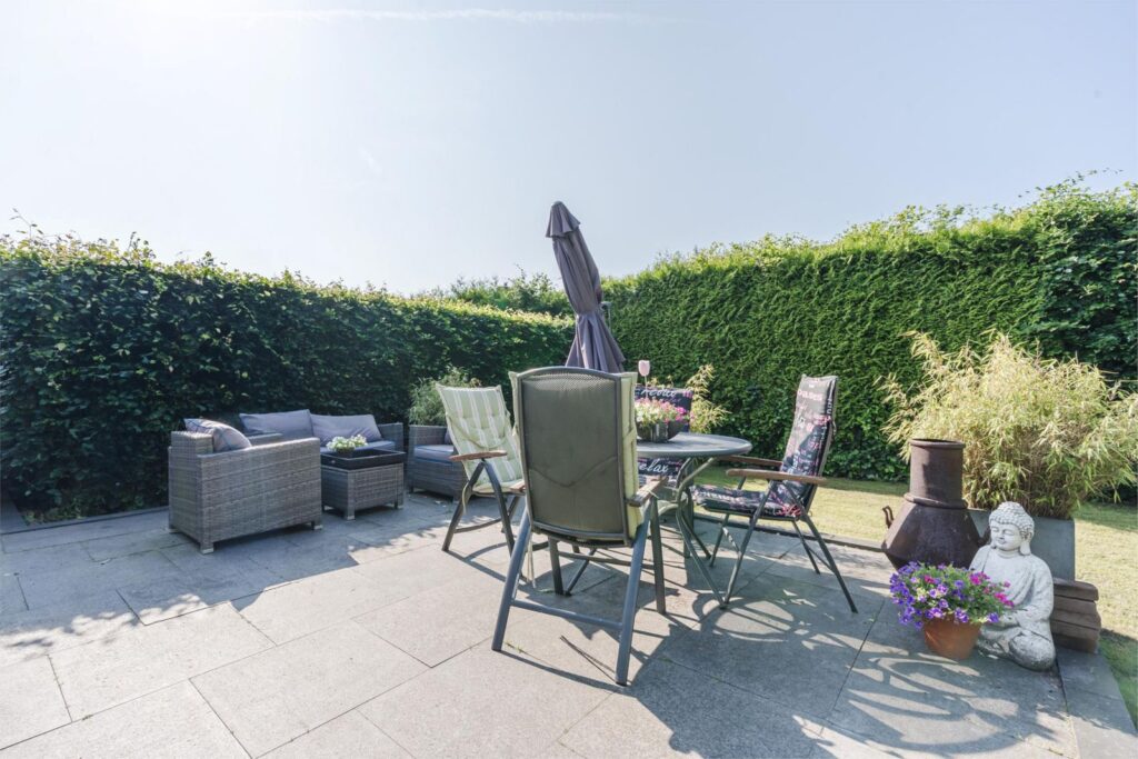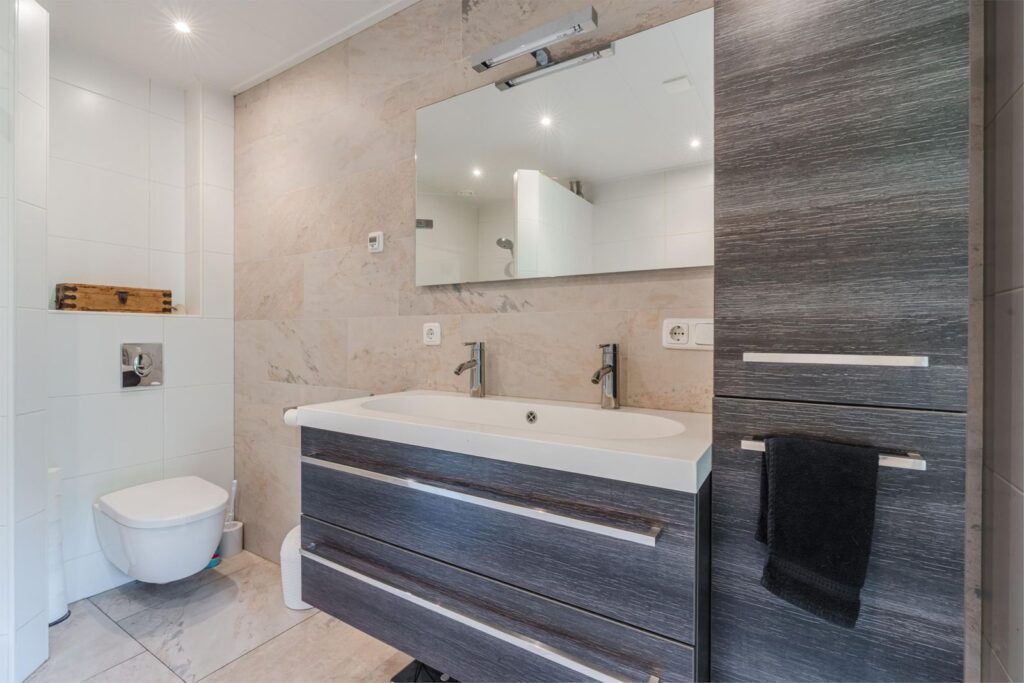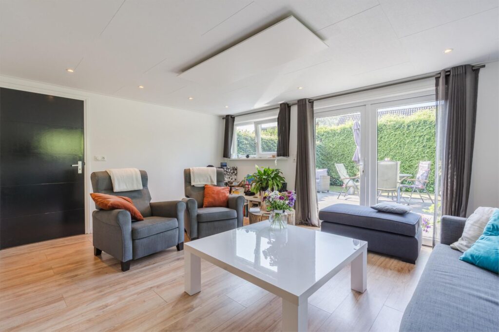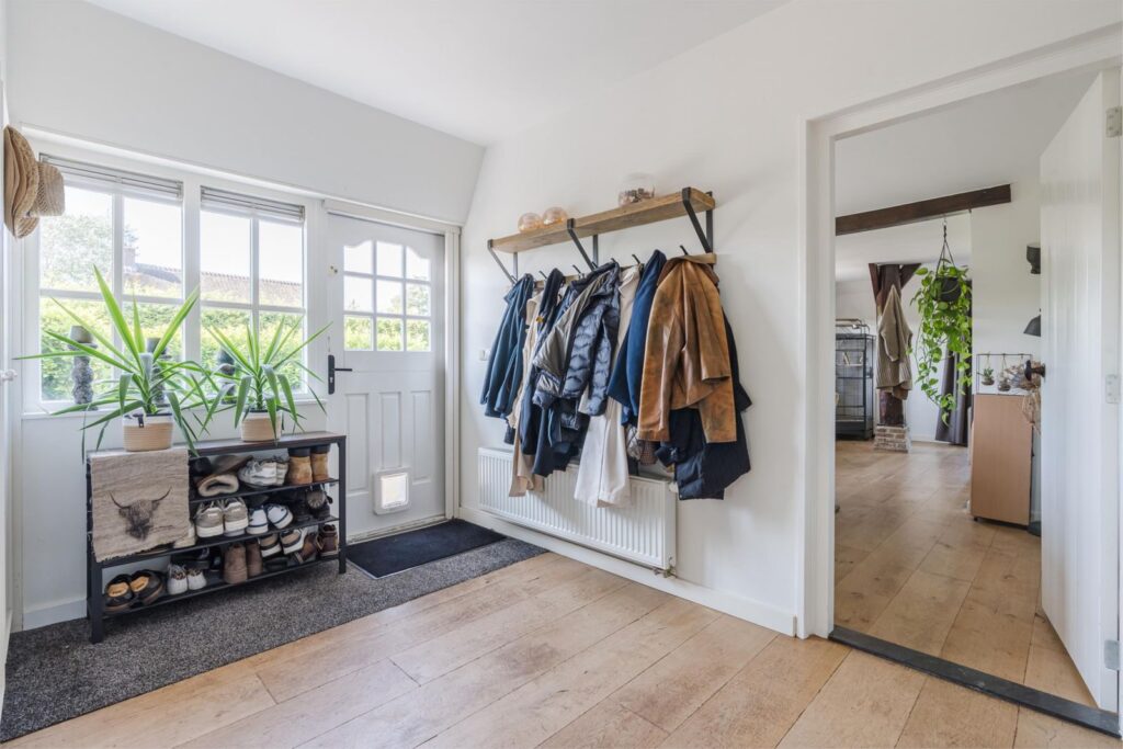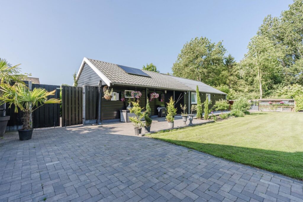 Zij-entree met royale hal die in directe verbinding staat met de royale woonkamer en woonkeuken, toiletruimte, zeer royale slaapkamer met kledingkast, moderne badkamer met inloopdouche, dubbele wastafel, royaal bad en hangend toilet en 2 x een werkkamer/opslag of slaapkamer. De sfeervolle lichte woonkamer is uitgerust met nog originele elementen en gesitueerd aan de achterzijde van de woning met openslaande tuindeuren en directe toegang tot het zeer royale terras en fraai aangelegde tuin met vijverpartij. Woonkamer is recent geheel opnieuw gesaust, voorzien van houtenvloer en wordt heerlijk verwarmd (naast evt. CV als bijverwarming) door in 2024 aangekochte speksteen kachel. Aan de voorzijde van de woning vind men de woonkeuken welke is voorzien van diverse inbouwapparatuur als een 4-pits geïntegreerd gasfornuis, oven, magnetron, afzuigschouw, vaatwasser, inbouw bonen koffiezetapparaat en ladenkoelkast.