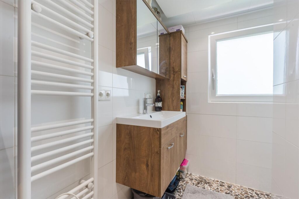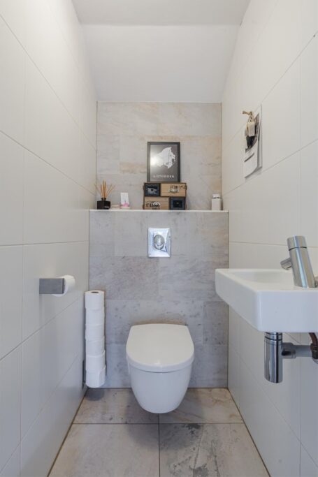 Aan de voorzijde van de woning treft u tevens een zeer royale slaapkamer met kastenwand, aansluiting voor TV met daarnaast twee middelgrote ruimtes welke thans dienst doen als kantoor aan huis en opslag / kledingruimte. Deze ruimtes zijn eventueel ook als slaapkamer te gebruiken en als dusdanig op plattegrond ingetekend. Mogelijkheden voor een eigen praktijk aan huis zijn aanwezig. Via de hal komt u daarnaast in de kelder voor opslag van uw levensmiddelen. Badkamer en toilet zijn voorzien van elektrische vloerverwarming voor extra stukje comfort.