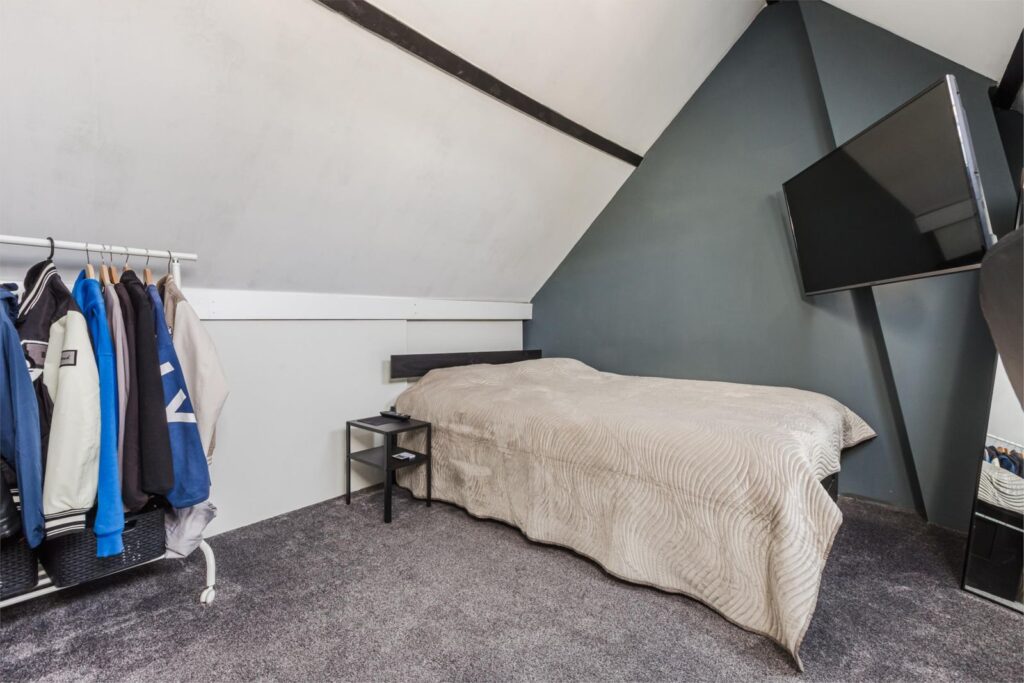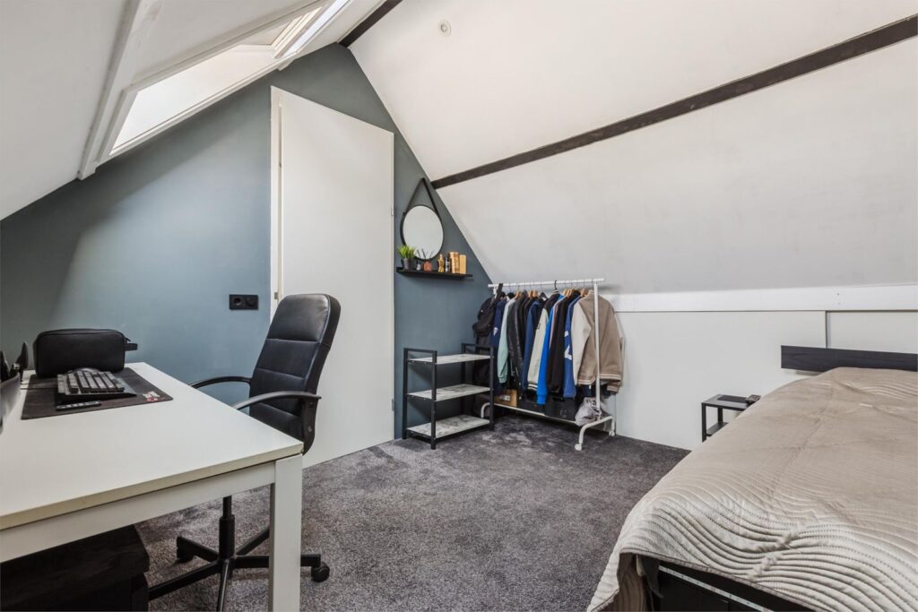 • Multifunctionele ruimte (nu in gebruik als slaapkamer) met Velux-dakramen en opbergruimte achter knieschotten