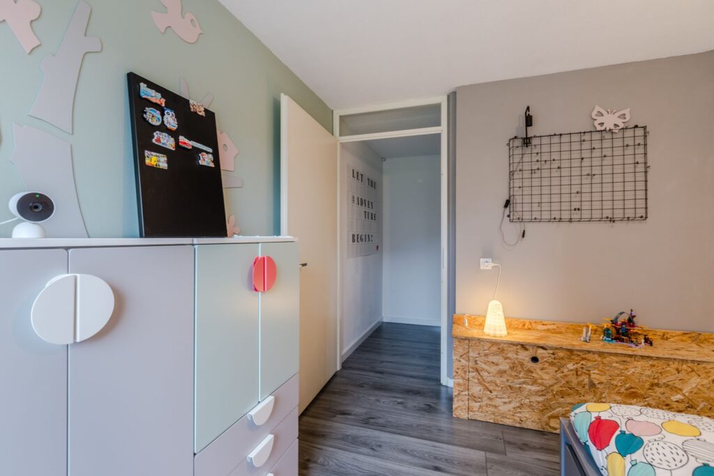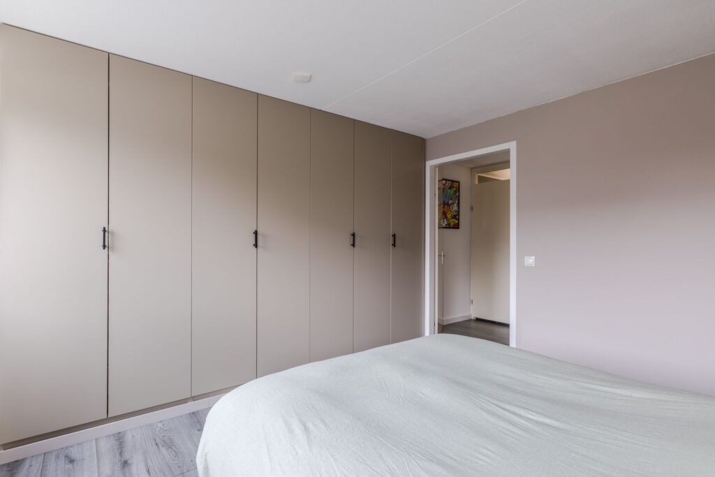 Daarnaast zijn er 2 slaapkamers. De grote slaapkamer aan de achterzijde beschikt over een inloopkast. Het raam van de slaapkamer aan de straatzijde is voorzien van een rolluik.