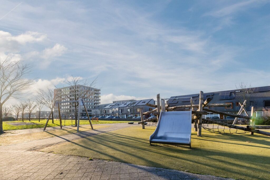 Parkeren doe je gewoon voor de deur. Scholen, kinderopvang, winkels, een bushalte en Park De Hoge Weide liggen allemaal op loopafstand. En binnen ongeveer een kwartier fietsen sta je in het centrum van Utrecht, terwijl je via de A2/A12 zó de stad uit bent.