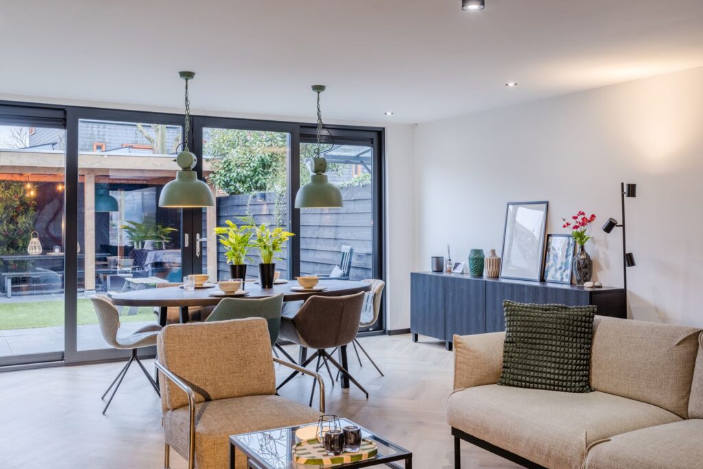 - Uitbouw (2022) met vloerverwarming en aluminium schuifpui (triple glas)
