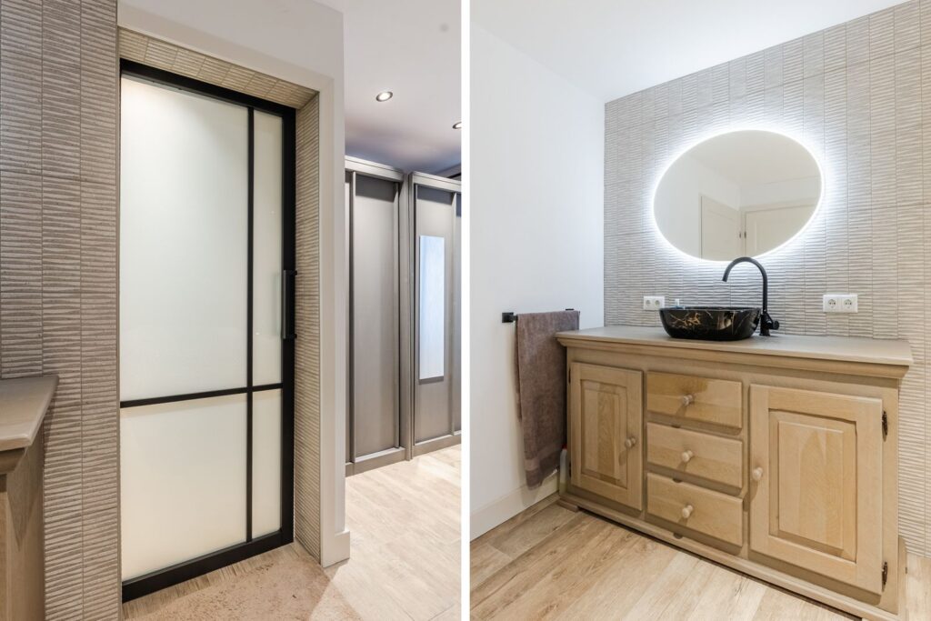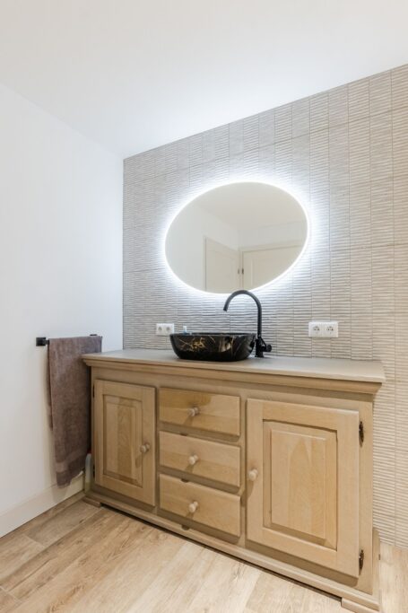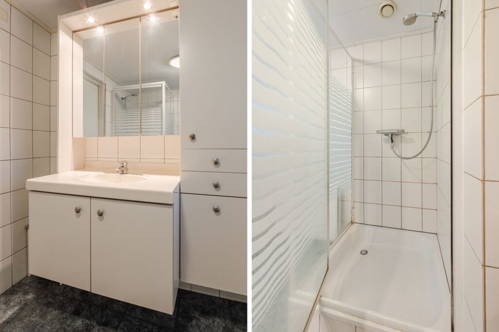-badkamer voorzien van ligbad,douchecabine -en wastafelmeubel