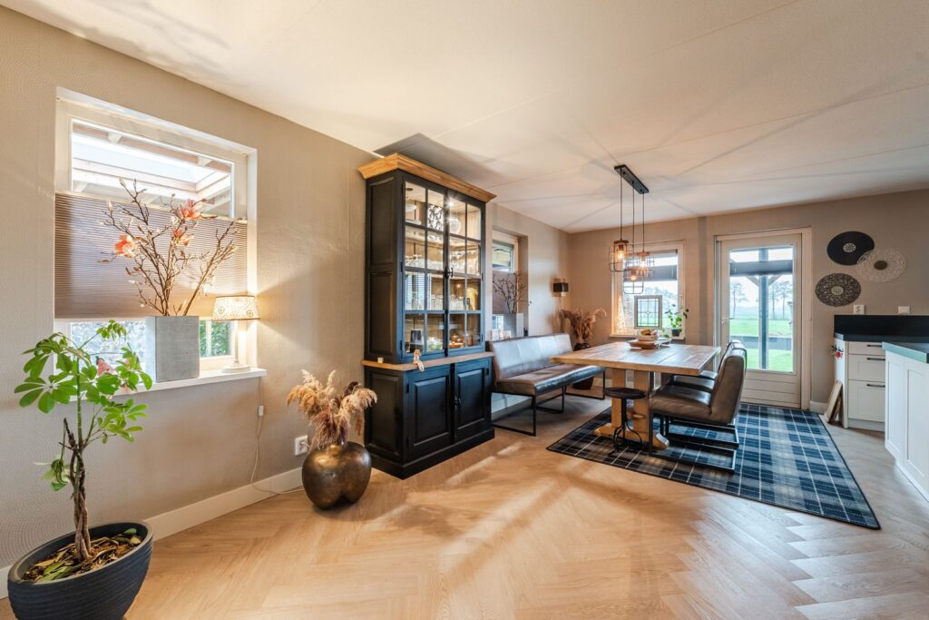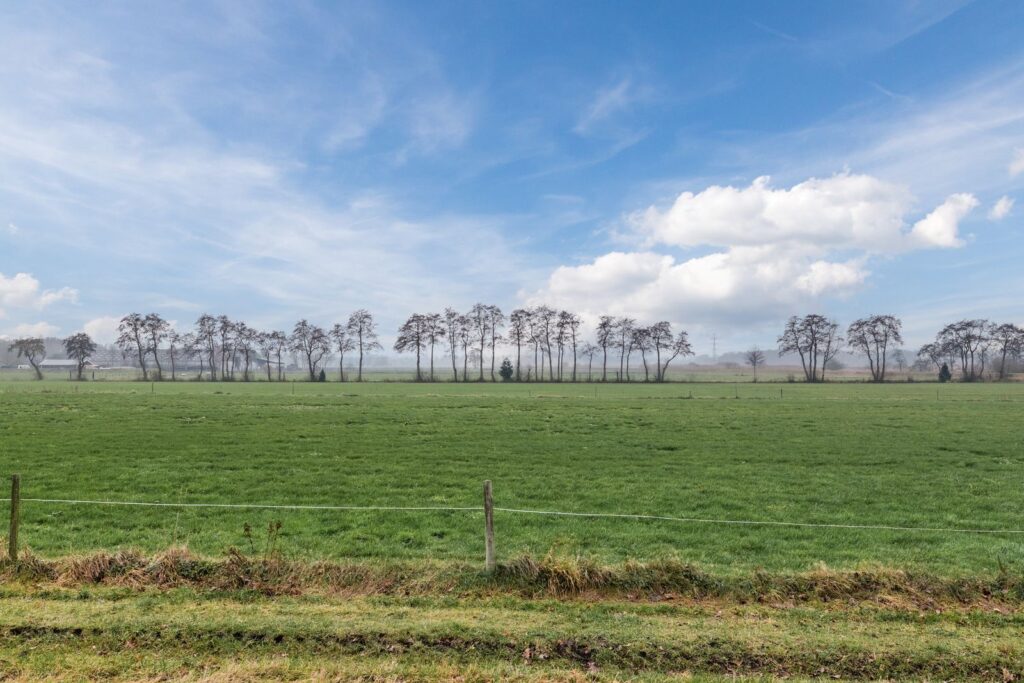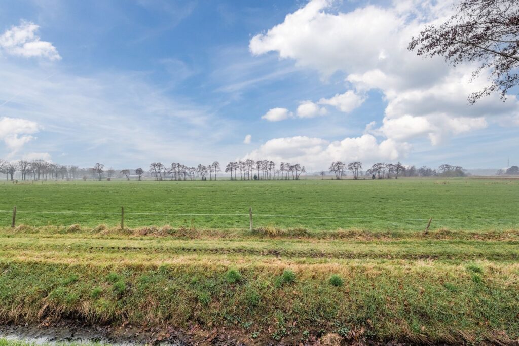 Doordat de woning aan de rand van het dorp is gelegen heb je een fantastisch uitzicht over de landerijen van het Drents Landschap.