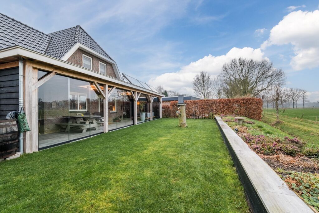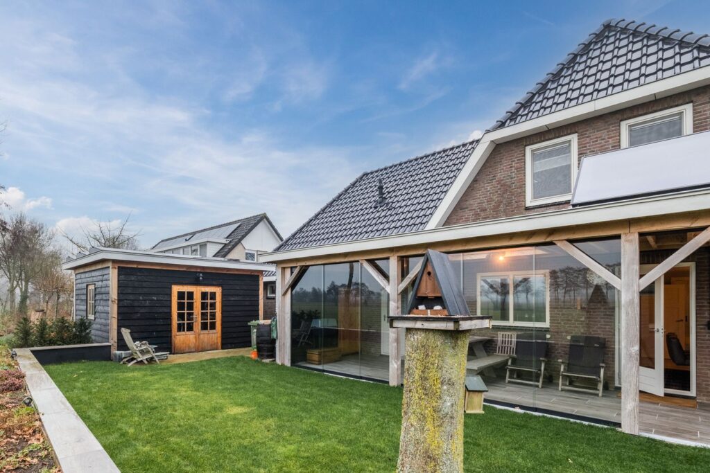 Rondom de woning heb je volop ruimte in de ruime tuin met aan de achterzijde een overdekt terras met glazenschuifwanden gelegen op het zuidwesten