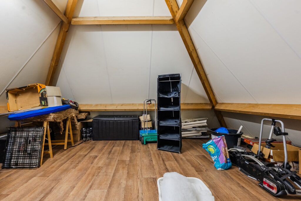 Verder is er een tuinschuur/hobbyruimte aanwezig ( 6×4 mtr) en een inpandige berging met een ruime zolder.