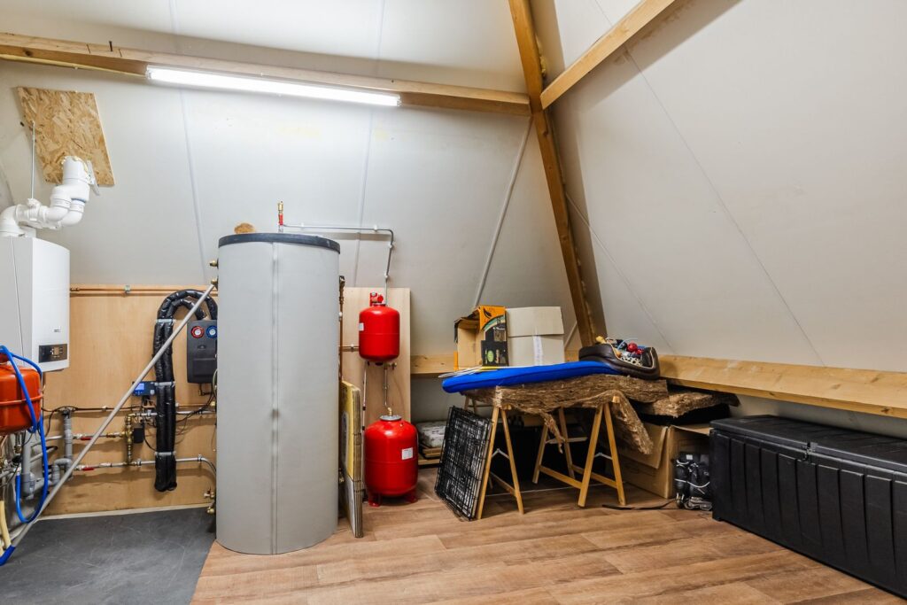 Vloerverwarming beneden en cv installatie (2023) met zonnepanelen en zonneboiler.