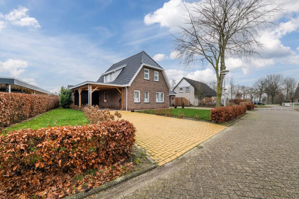 Naast de woning is er een carport met oplaadstation aanwezig en een vrije oprit naar