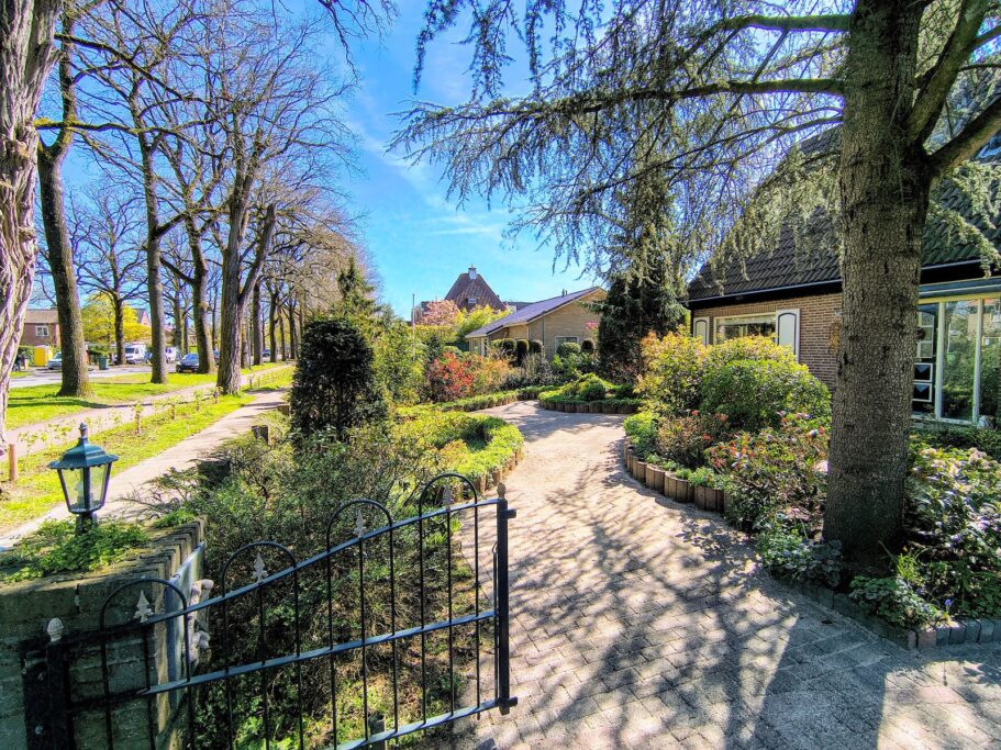 De woning beschikt over een fraai aangelegde tuin rondom de woning, met volop privacy en een ruim besloten terras. Dankzij de royale perceelgrootte is er altijd een plek in zon of schaduw. De achterzijde van de woning bevindt zich op het zuiden. Een heerlijke tuin voor rust, ontspanning en het buitenleven. In de hoek van de achtertuin bevindt zich een afsluitbare poort, die direct toegang geeft tot een ruim plein met gratis parkeerplaatsen.