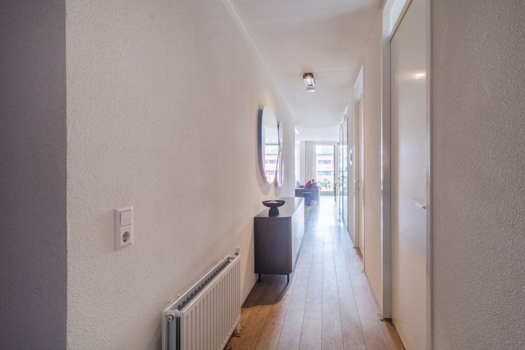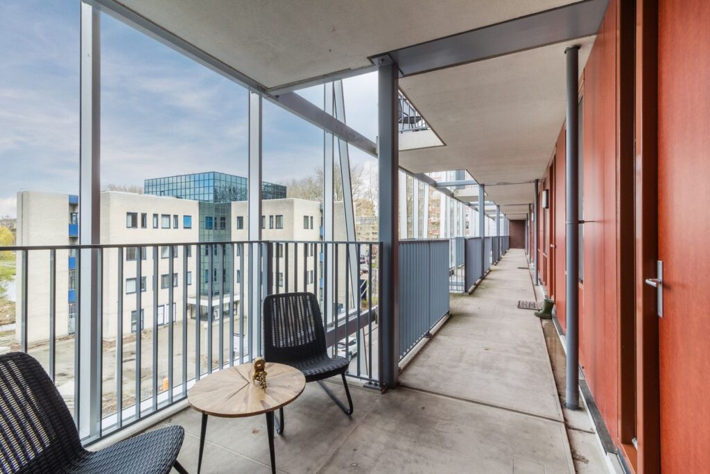 De woning is gelegen op de hoek van het complex waardoor er geen overlast is van voorbijgangers op de galerij, hierdoor heb je ook nog een leuk zitje voor je eigen voordeur.