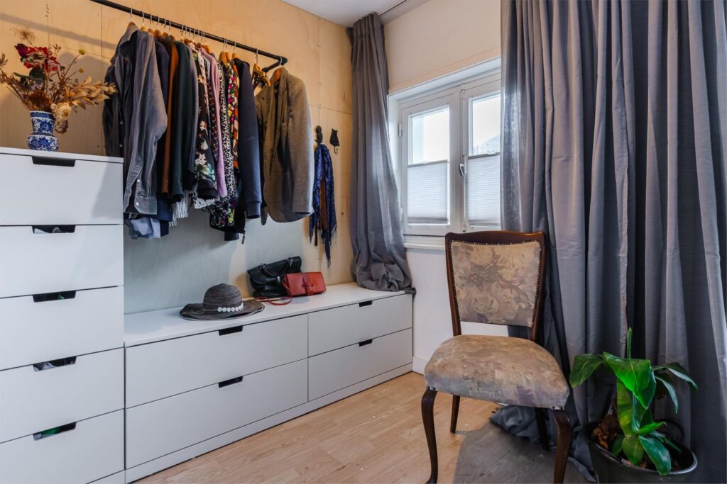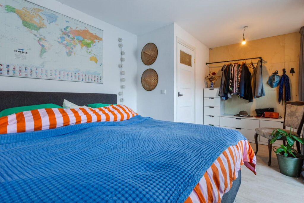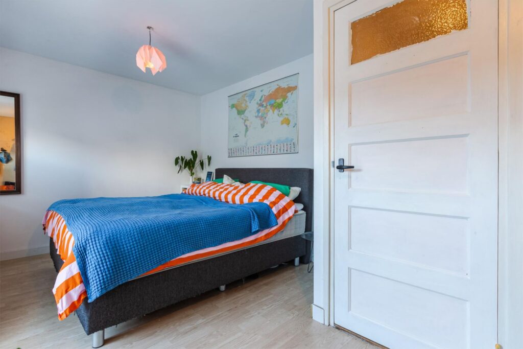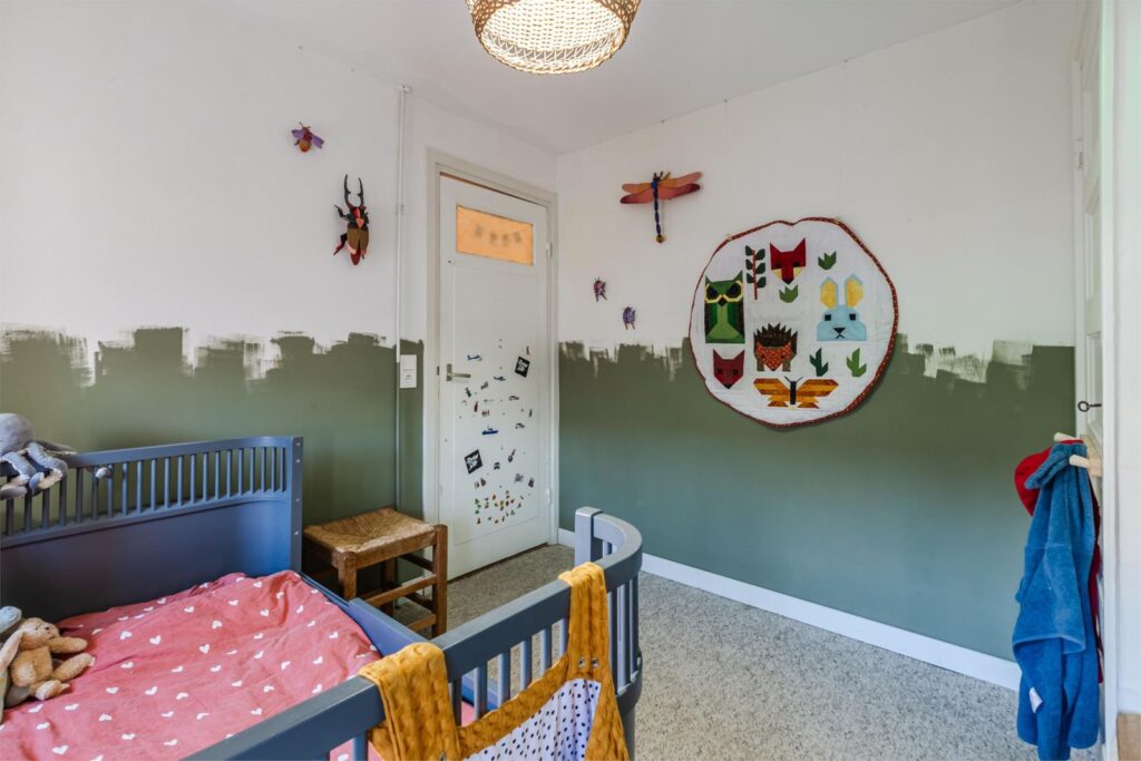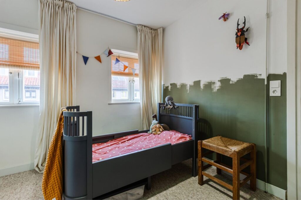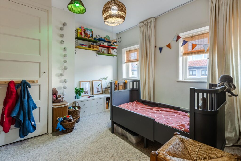 De andere slaapkamer met originele inbouwkast hebben wij in dit geval als kinderkamer ingericht en biedt naast een slaapvertrek ook nog voldoende ruimte als speel- studeer- en/of verblijfsplek.