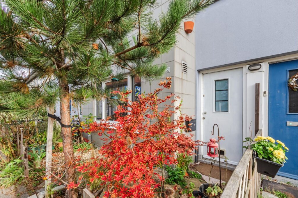 Passend bij het sociale karakter van Floradorp biedt ook de intiem ingerichte voortuin ruimte om te verblijven, terwijl kinderen spelen op straat, of om even een praatje te maken met de buren.