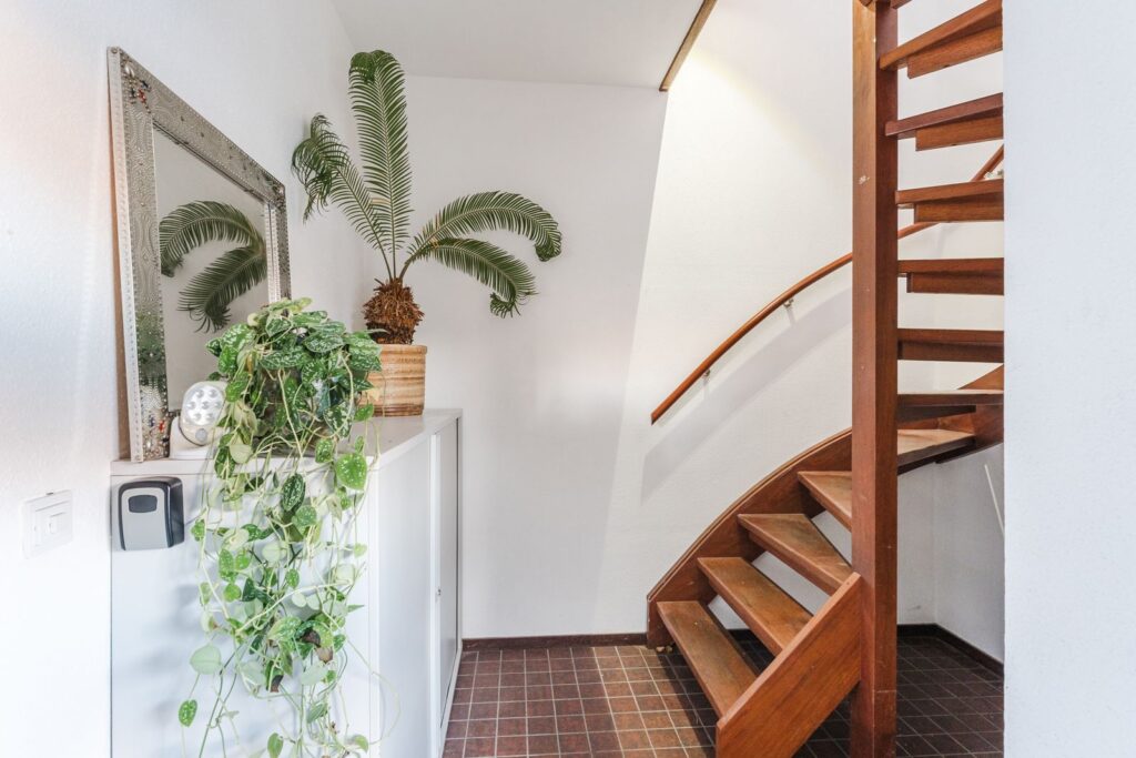 Entree op straat niveau met hal en trapopgang naar de eerste etage.