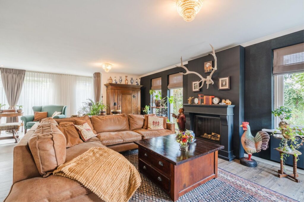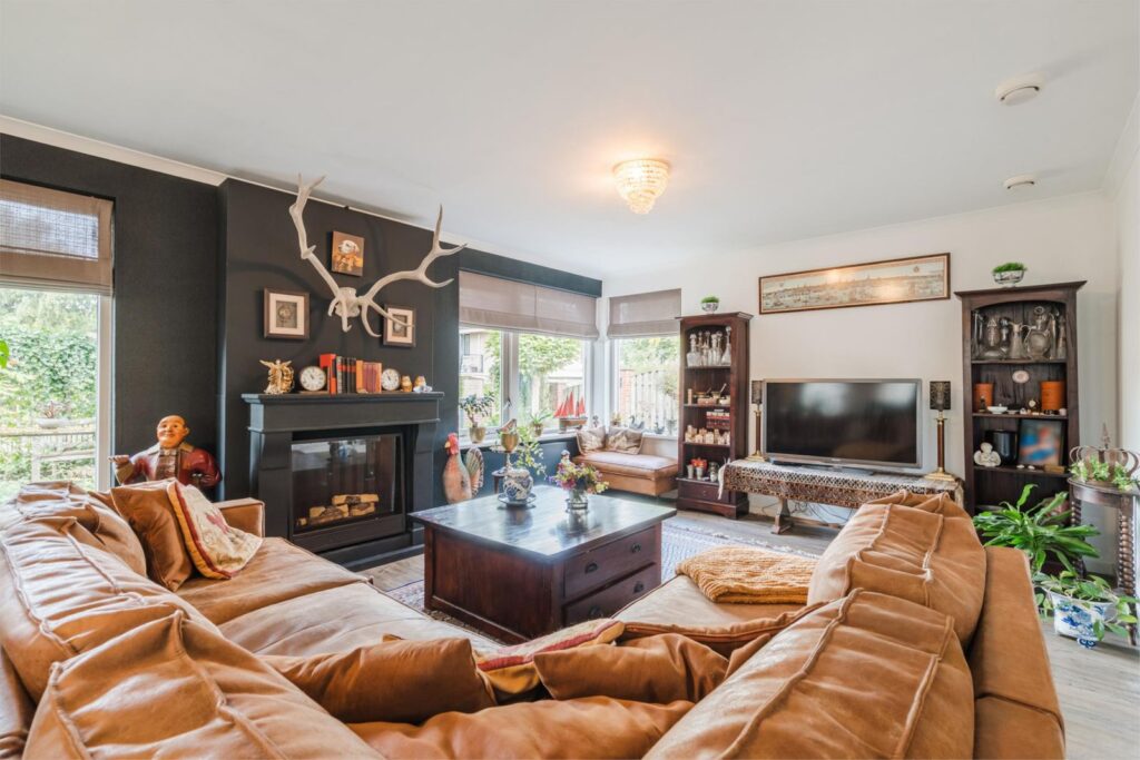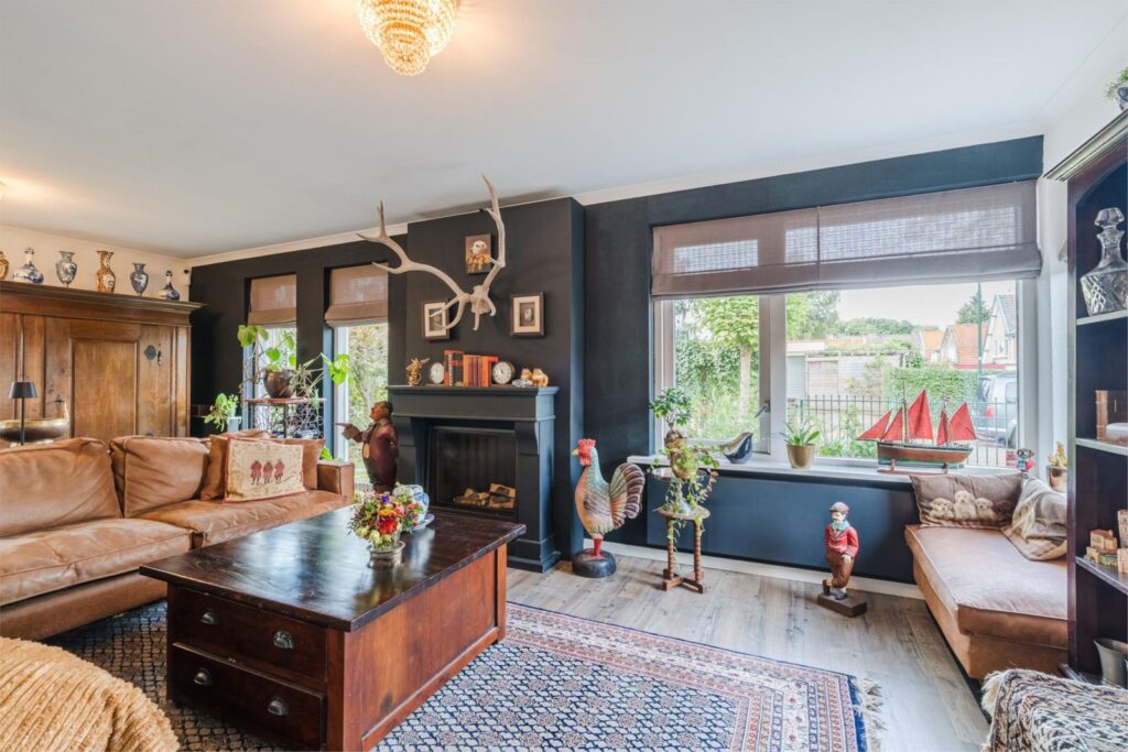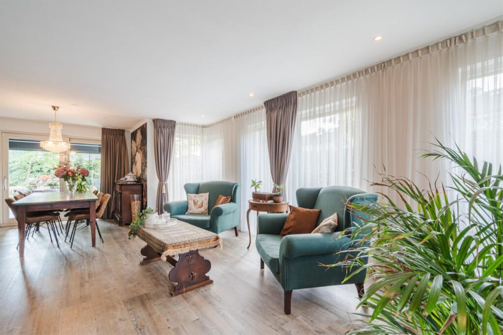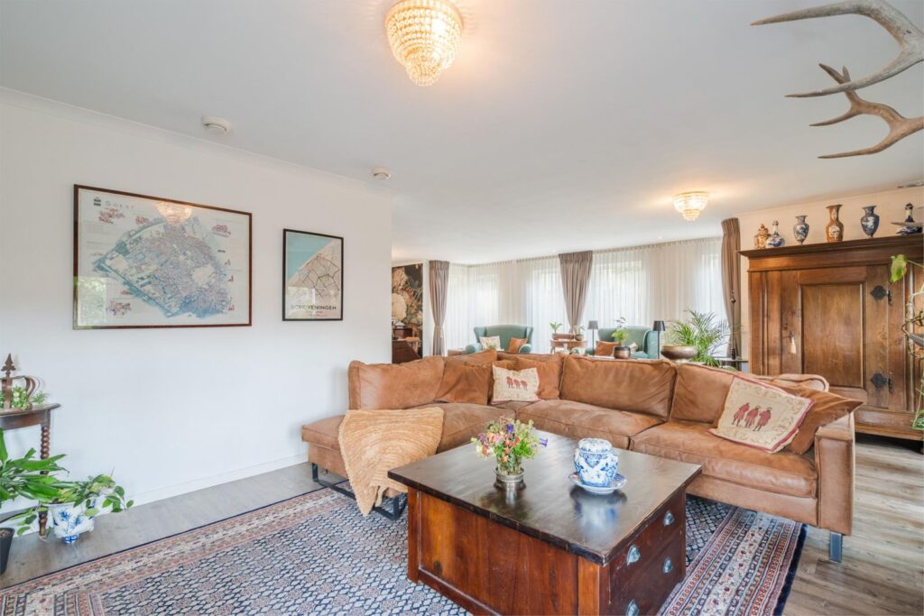 De hal geeft toegang tot de meterkast, trapopgang en de toiletruimte. De sfeervolle woonkamer heeft grote raampartijen, die garant staan voor veel lichtinval.