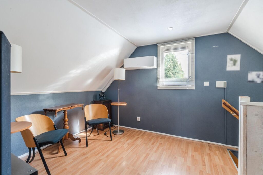Hier bevindt zich de derde slaapkamer met aangrenzende zit/werkkamer, voorzien van airconditioning (koelen en verwarmen).