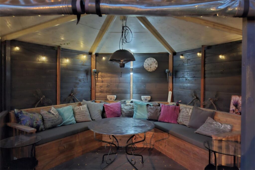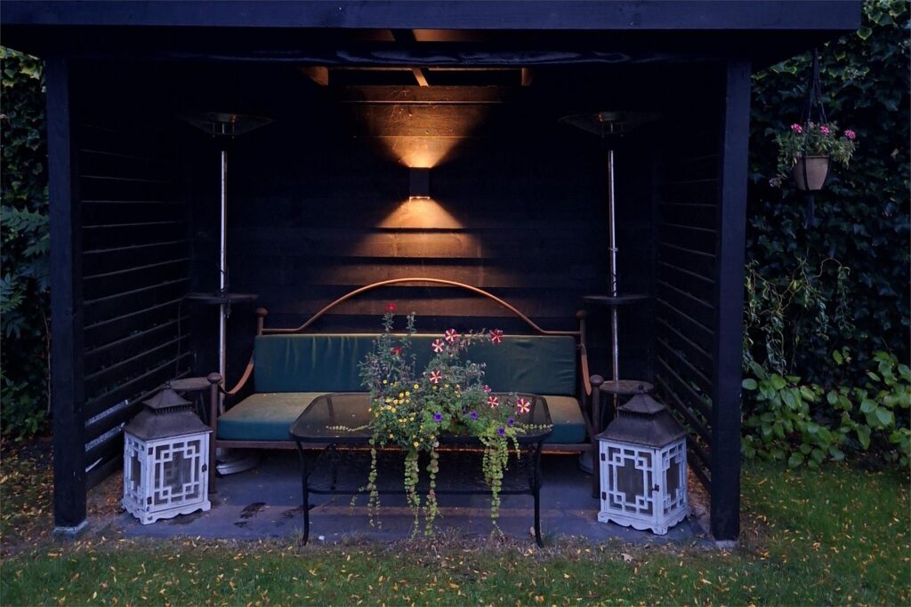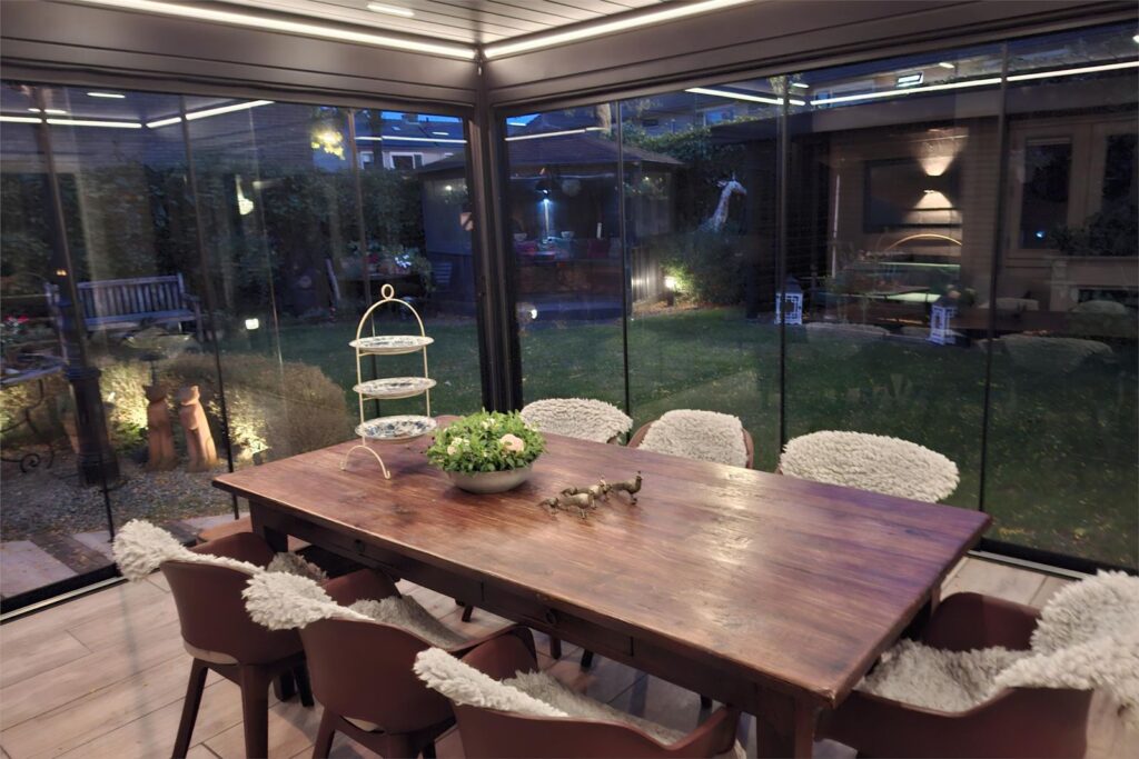 - Luxe tuinkamer met verlichting, glazen schuifwanden en screens