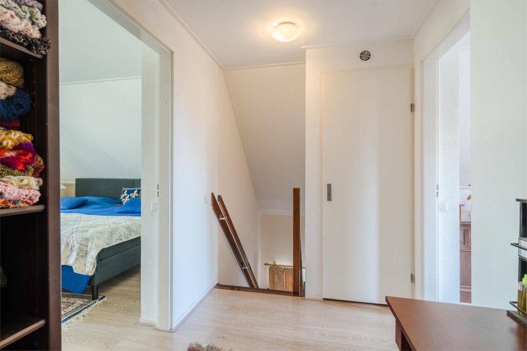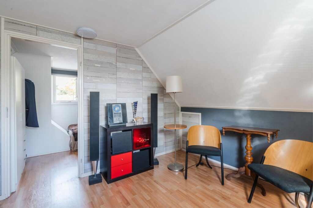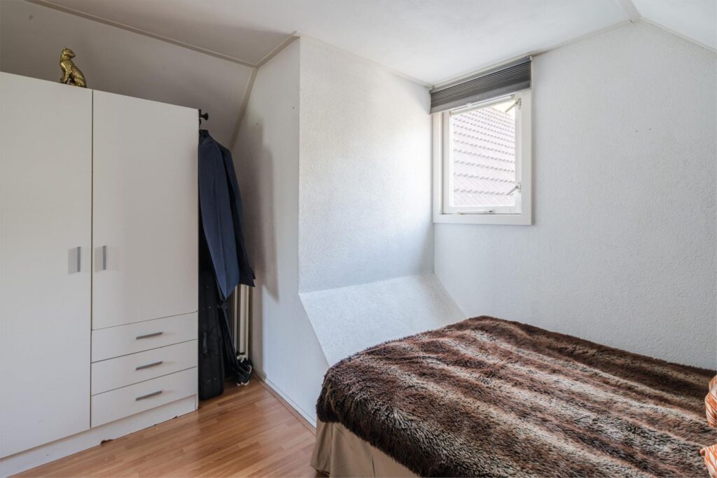 Er zijn twee grote slaapkamers, voorzien van berging achter de knieschotten en de kamer aan de voorzijde heeft inbouwkasten.