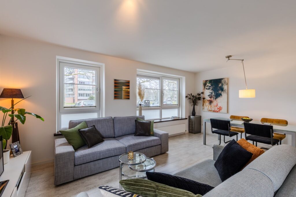 Het appartement dat deel uitmaakt van een kleinschalig complex, heeft een royale woonkamer van circa 26 m² met nieuwe kozijnen, ramen en op maat gemaakte raambekleding. De smaakvolle, recent geplaatste open keuken met composiet werkblad, is een blikvanger en creëert eenheid in de sfeerbeleving. Wat opvalt is hoe perfect de ruimtelijke indeling is van het appartement en de liefde die er in is gestoken is voelbaar.