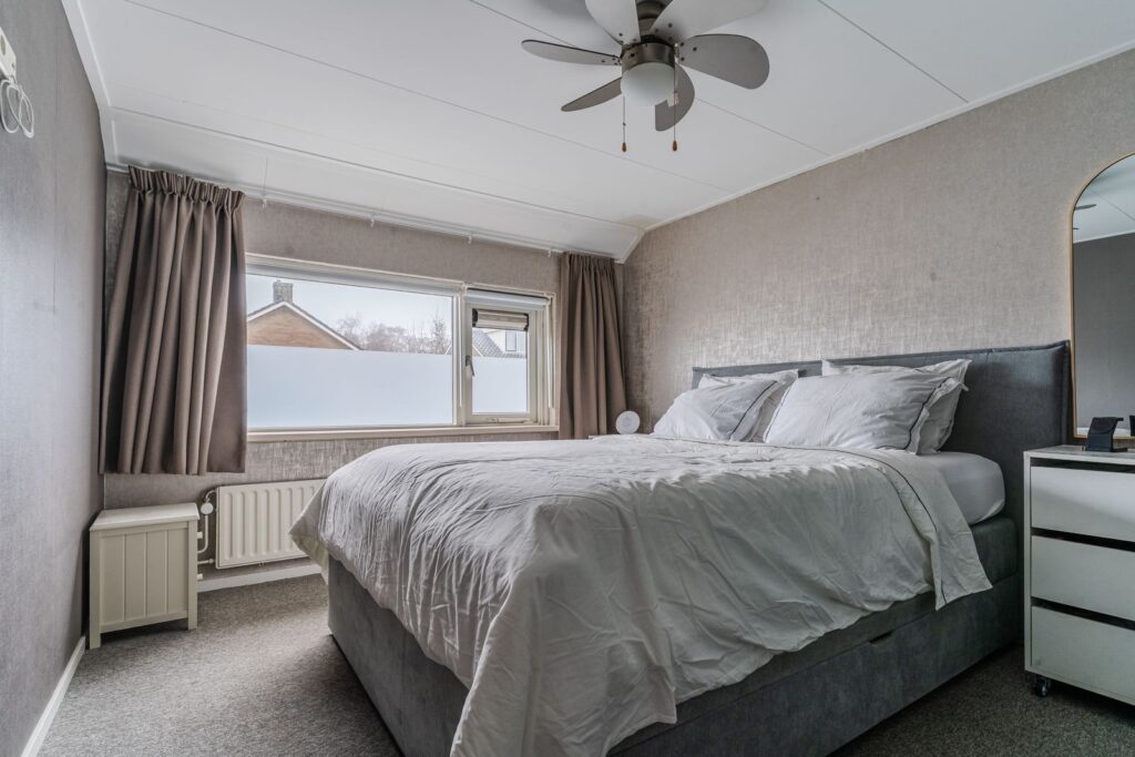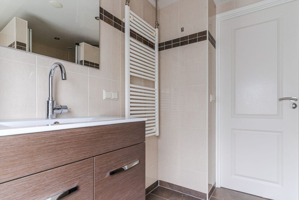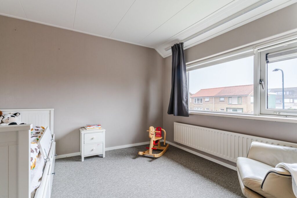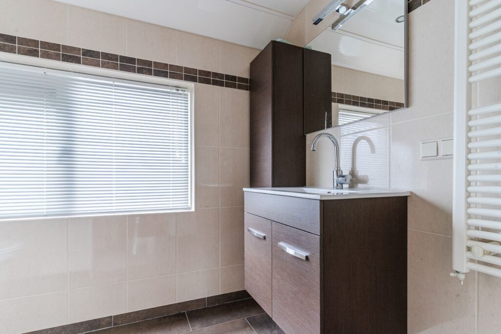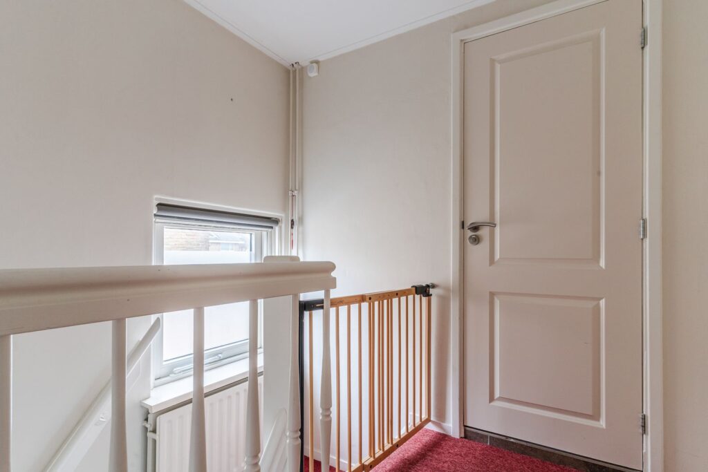 De eerste verdieping beschikt over drie nette slaapkamers, allemaal goed onderhouden en met een frisse uitstraling. De slaapkamers aan de voorzijde van de woning hebben uitzicht op de straat, terwijl de andere slaapkamer uitkijkt op de tuin. De badkamer is recent gemoderniseerd en voorzien van een douche, strak tegelwerk en vloerverwarming. De gehele verdieping is recent geschilderd en ziet er tiptop uit.