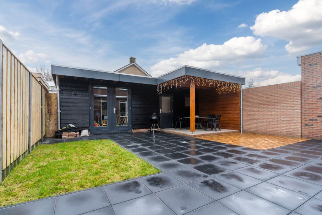- Tuin met nieuwe bestrating, en een verwarmd en geïsoleerd stenen kantoor met schuur en overkapping, ideaal voor werk of hobby’s.